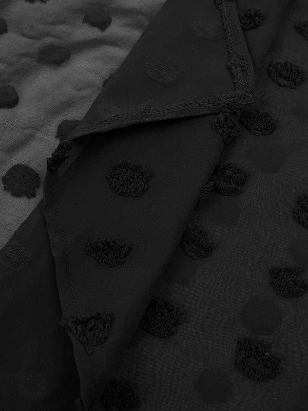 Loose Short Sleeves Jacquard See-Through Split-Joint Blouses