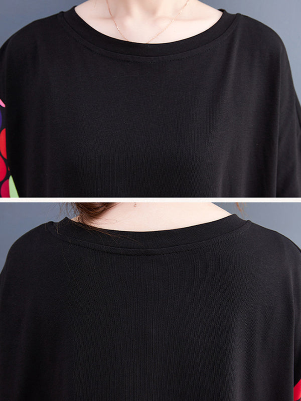 Loose Short Sleeves Multi-Colored Polka-Dot Split-Joint Round-Neck Midi Dresses