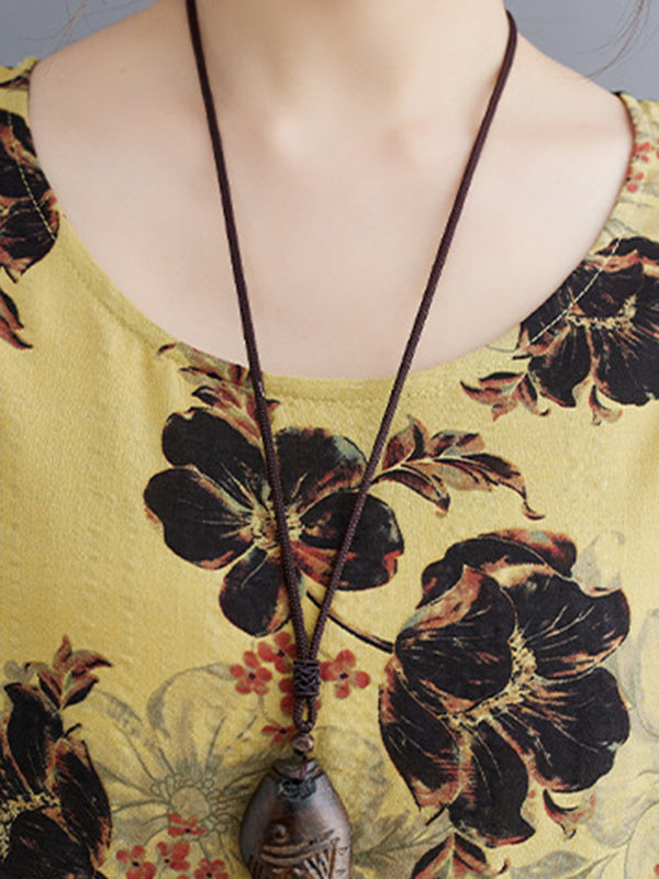 Loose Short Sleeves Pleated Printed Split-Joint Round-Neck Midi Dresses
