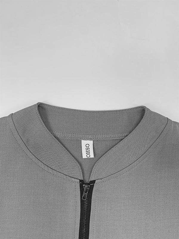 Loose Short Sleeves Solid Color Zipper V-Neck Blouses&Shirts Tops