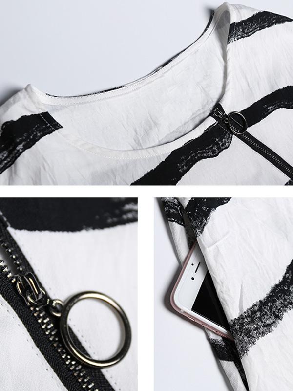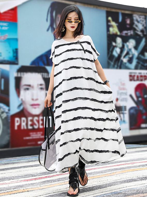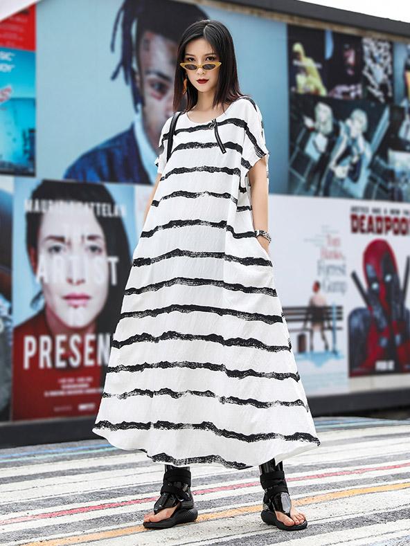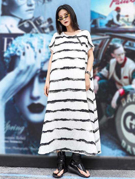 Loose Simple Striped Round-neck Long Dress