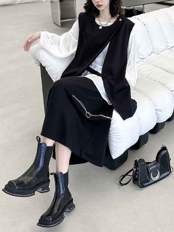 Loose Sleeveless Asymmetric Zipper Round-Neck Vest Top