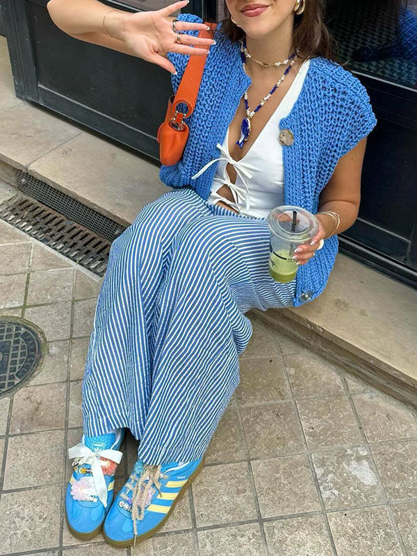 Loose Sleeveless Buttoned Pockets V-Neck Vest Outerwear