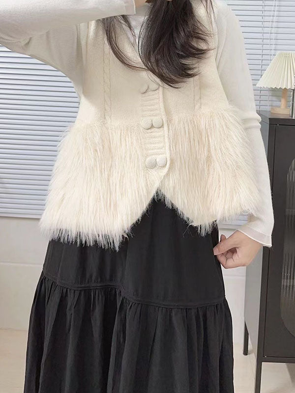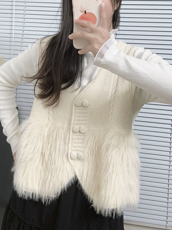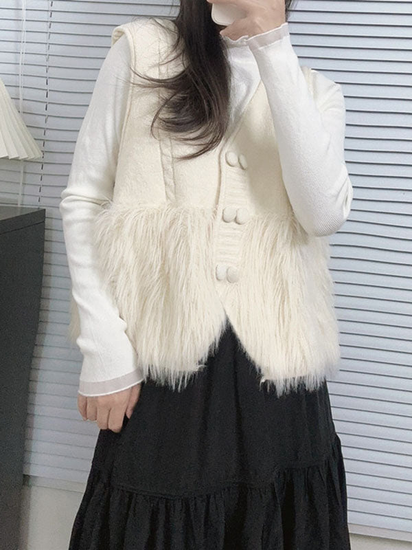 Loose Sleeveless Buttoned Solid Color Split-Joint V-Neck Vest Outerwear