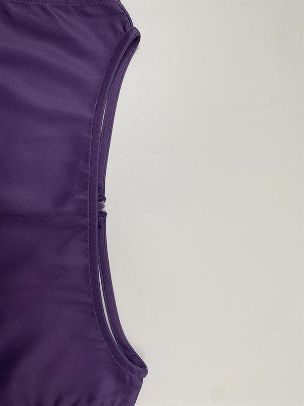 Loose Sleeveless Contrast Color Round-Neck Maxi Dresses