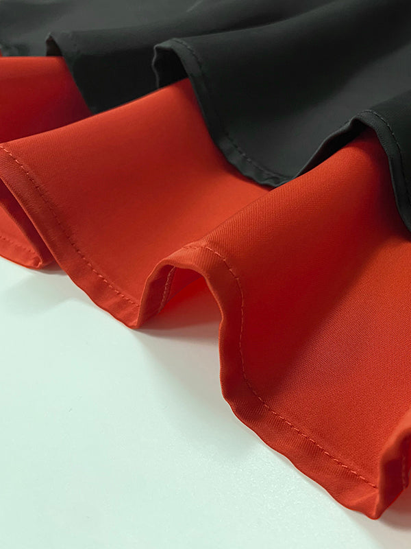 But what truly sets this dress apart is the bold contrast of the vibrant red ruffled hem. This unexpected pop of color creates a dynamic visual appeal. infusing the dress with a sense of playfulness and modern flair. The ruffled detailing adds movement and texture. ensuring you make a statement wherever you go.