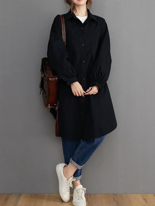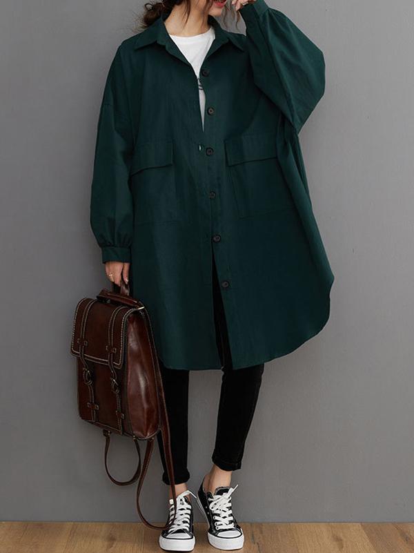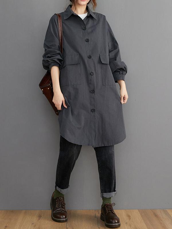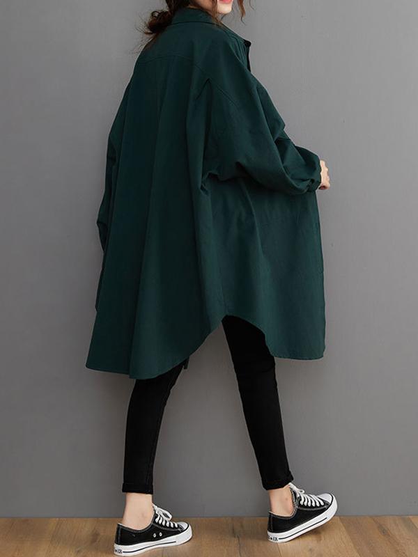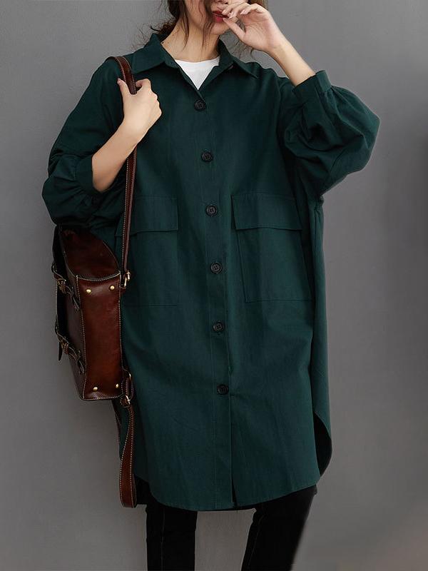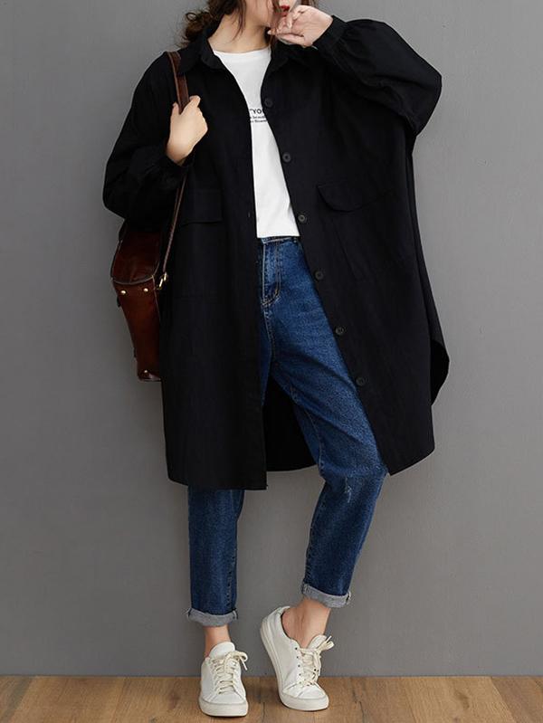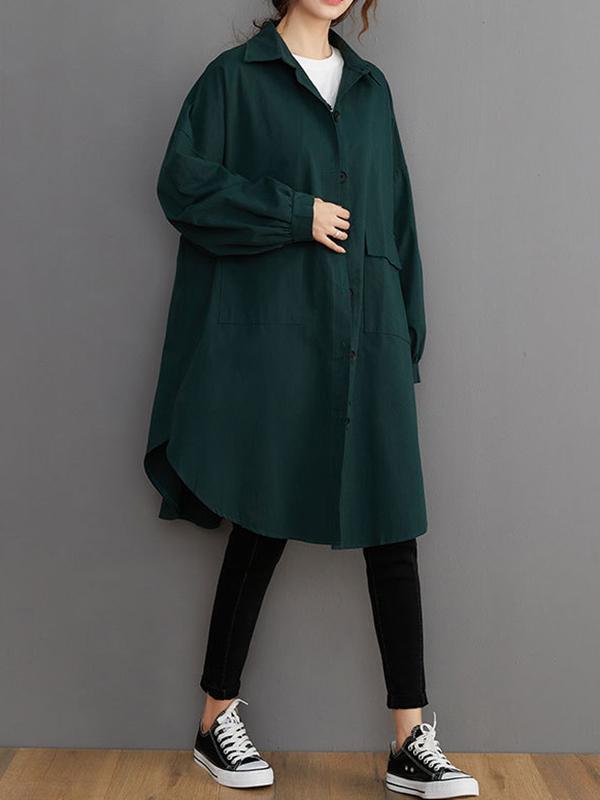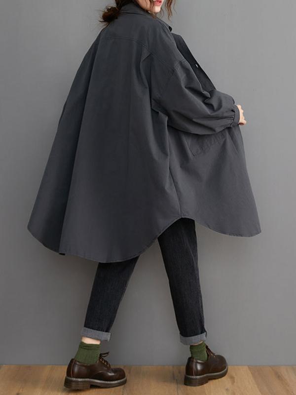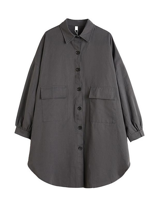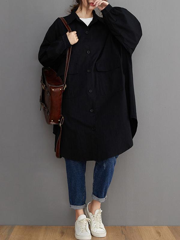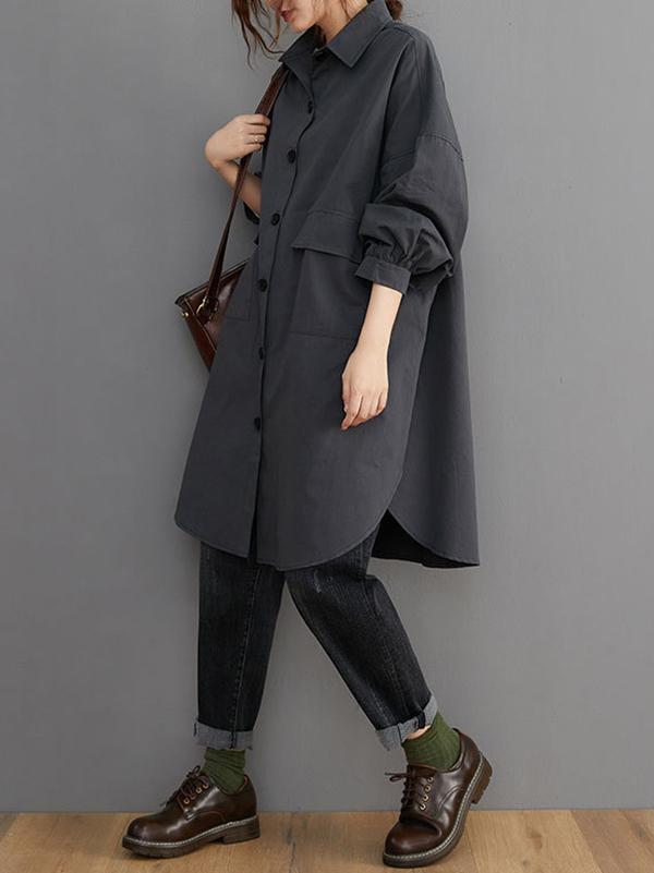 Loose Solid Color Long Sleeve Lapel Blouse Outwear