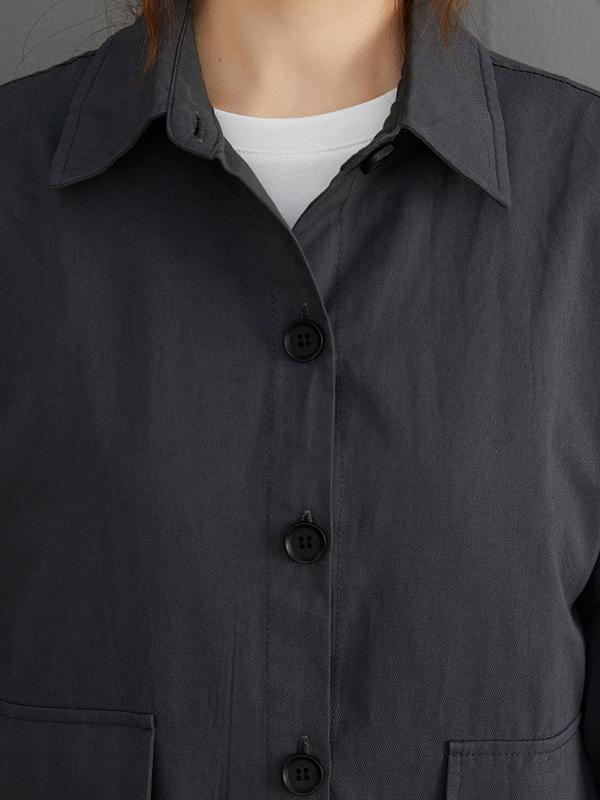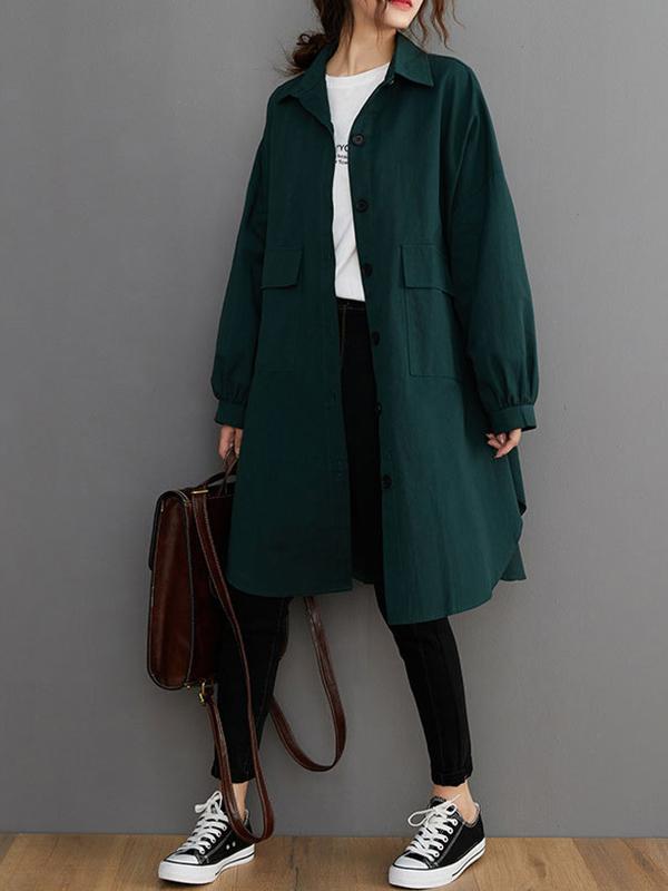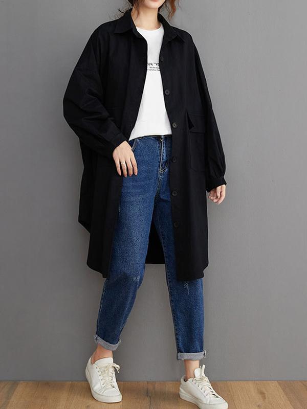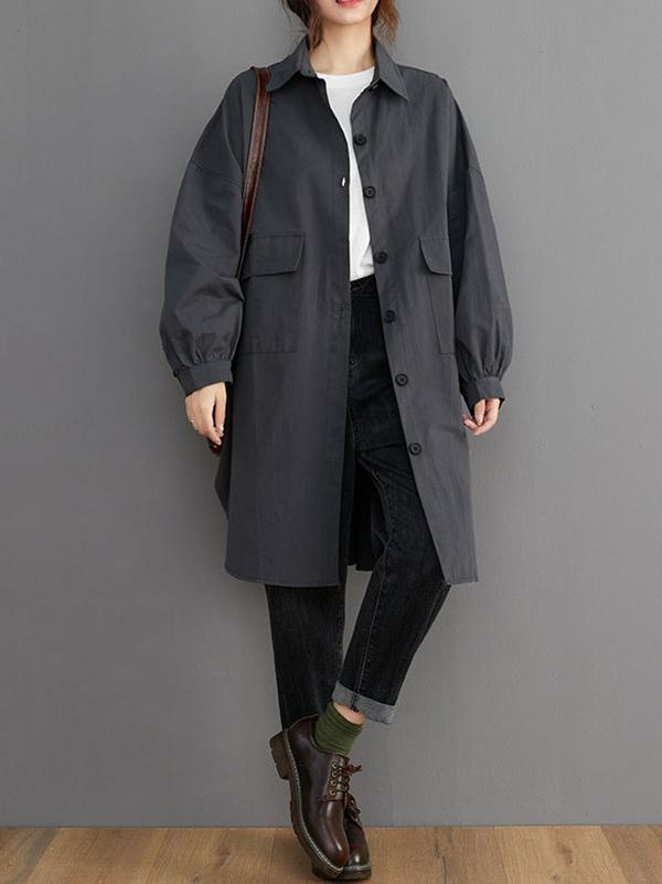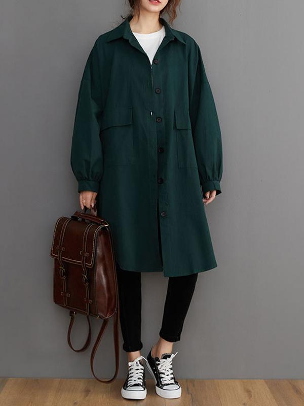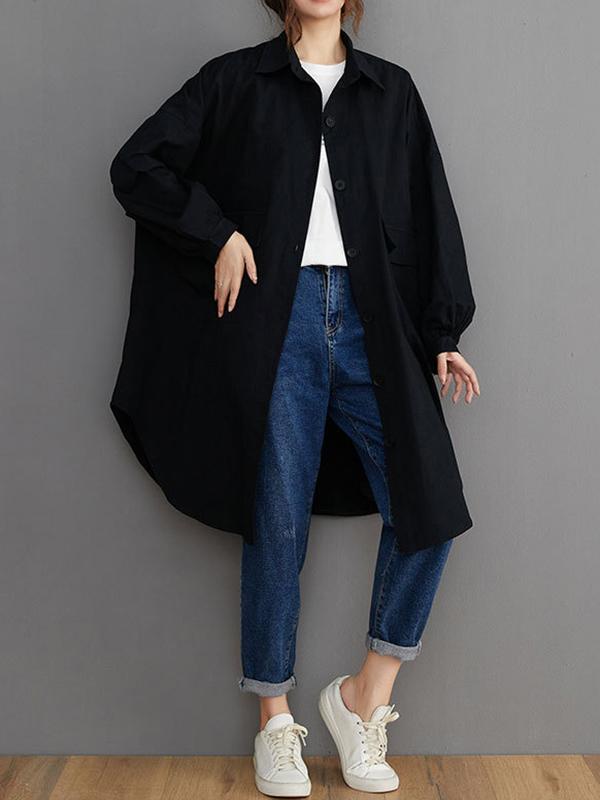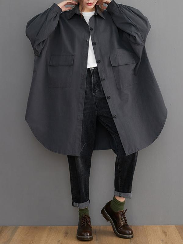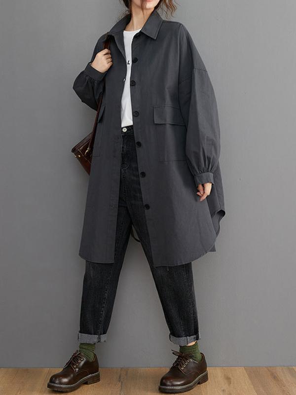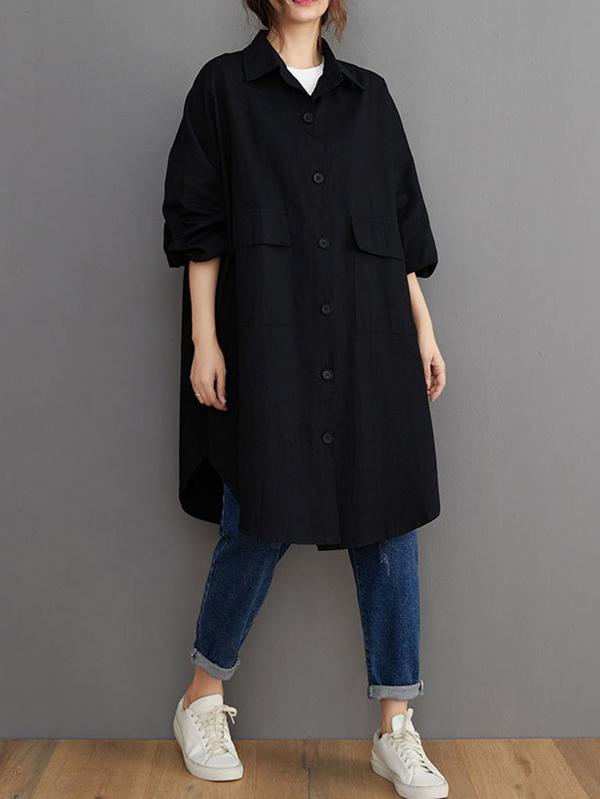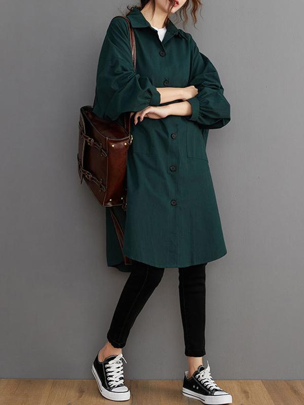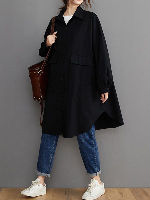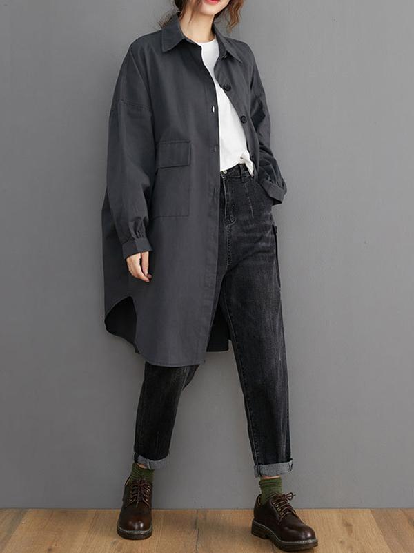 Loose Solid Color Long Sleeve Lapel Blouse Outwear