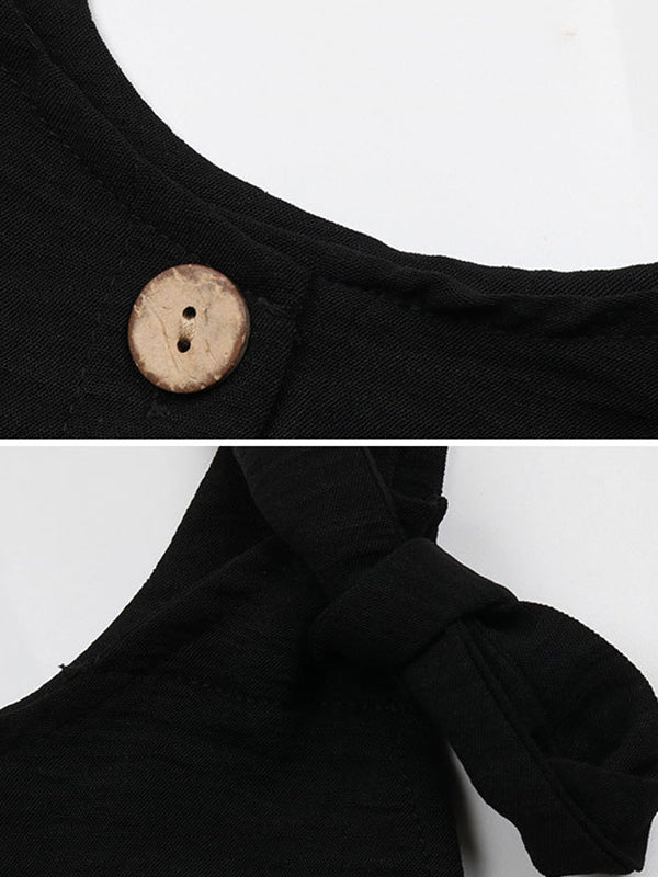 Loose Solid Color Round-Neck Rompers