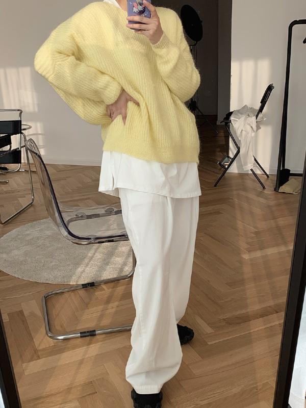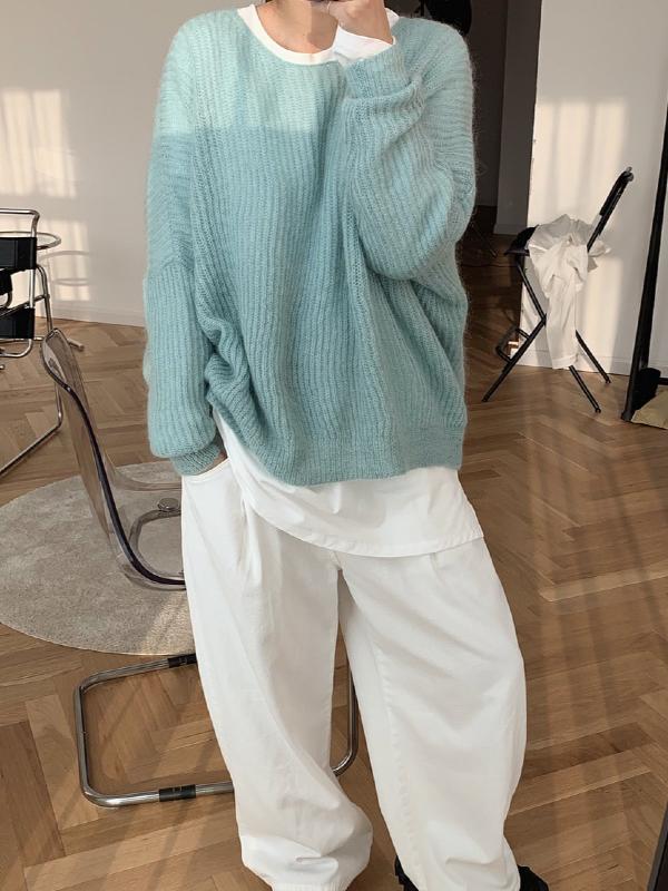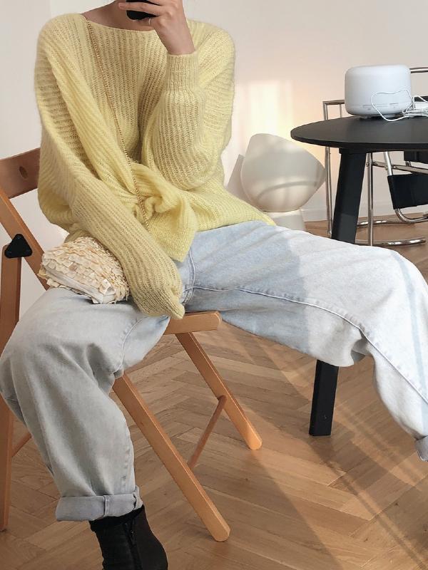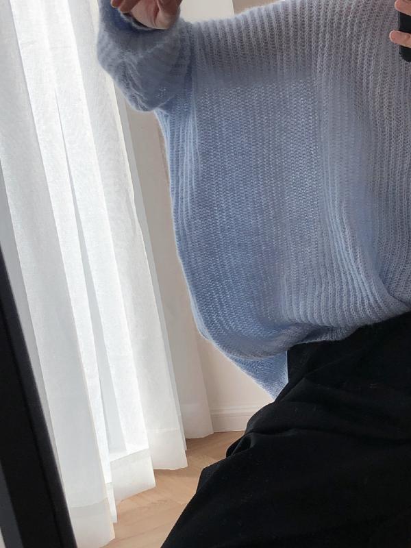 LOOSE SOLID MOHAIR SOFT-SKIN KNITTING SWEATER