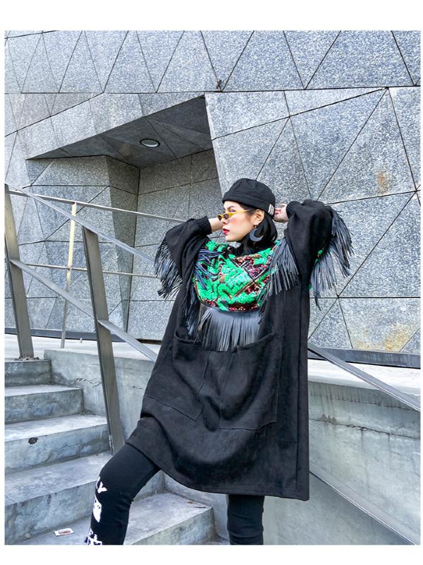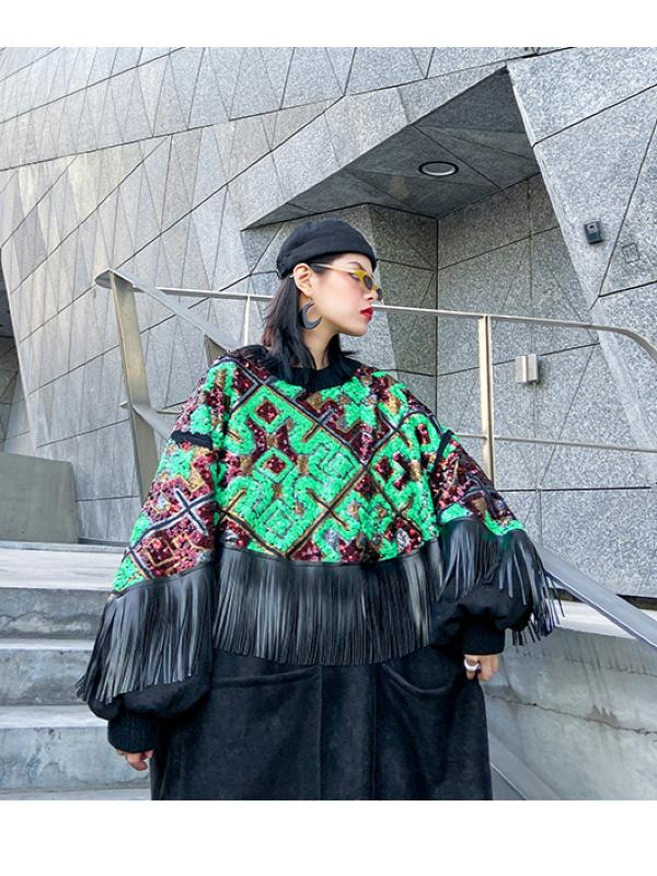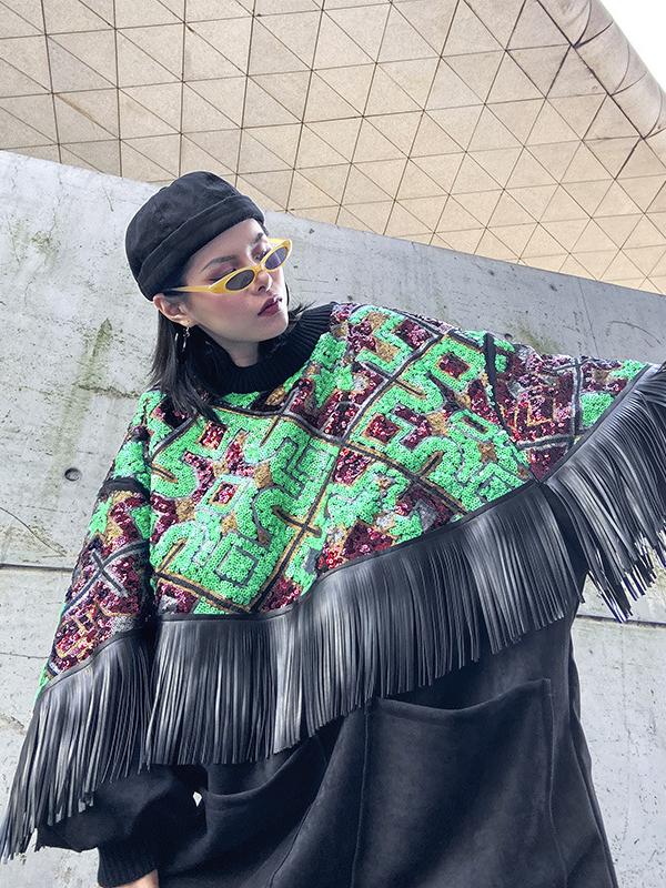 Loose Spliced Tasseled Sequined A-Line Dress