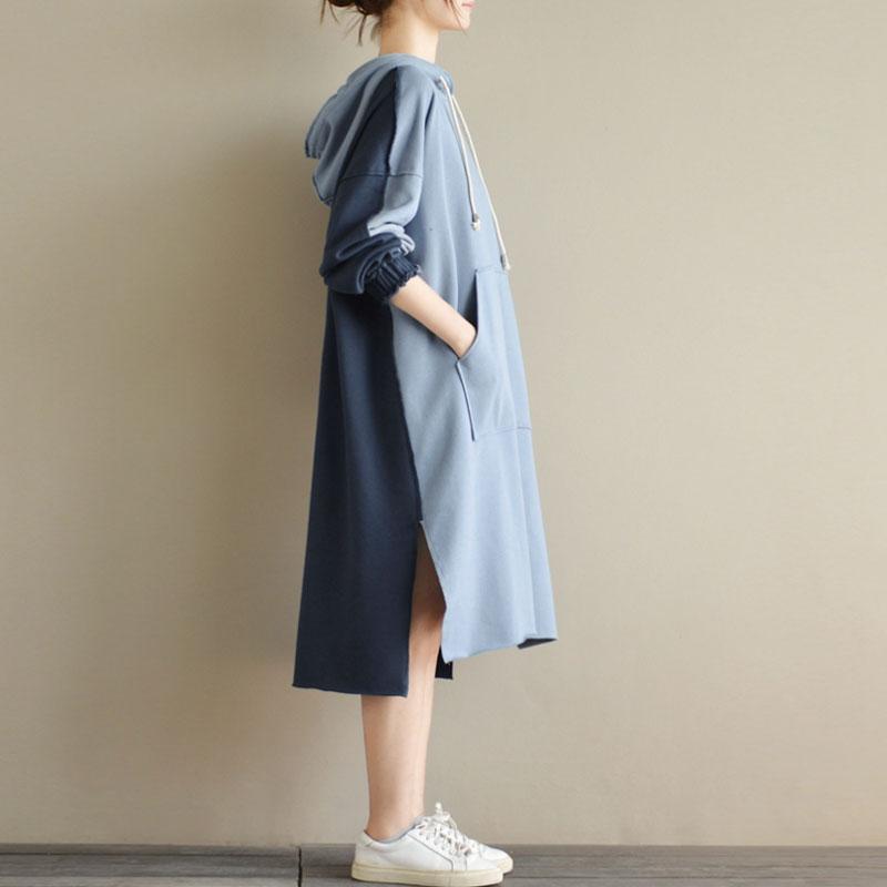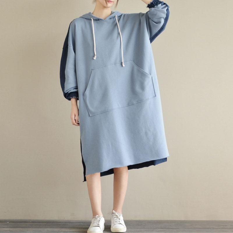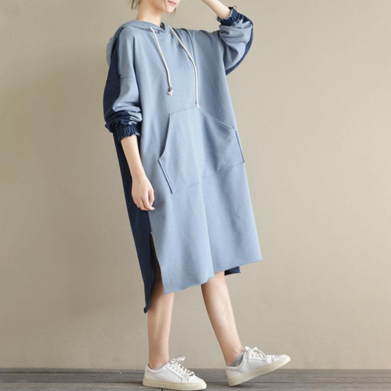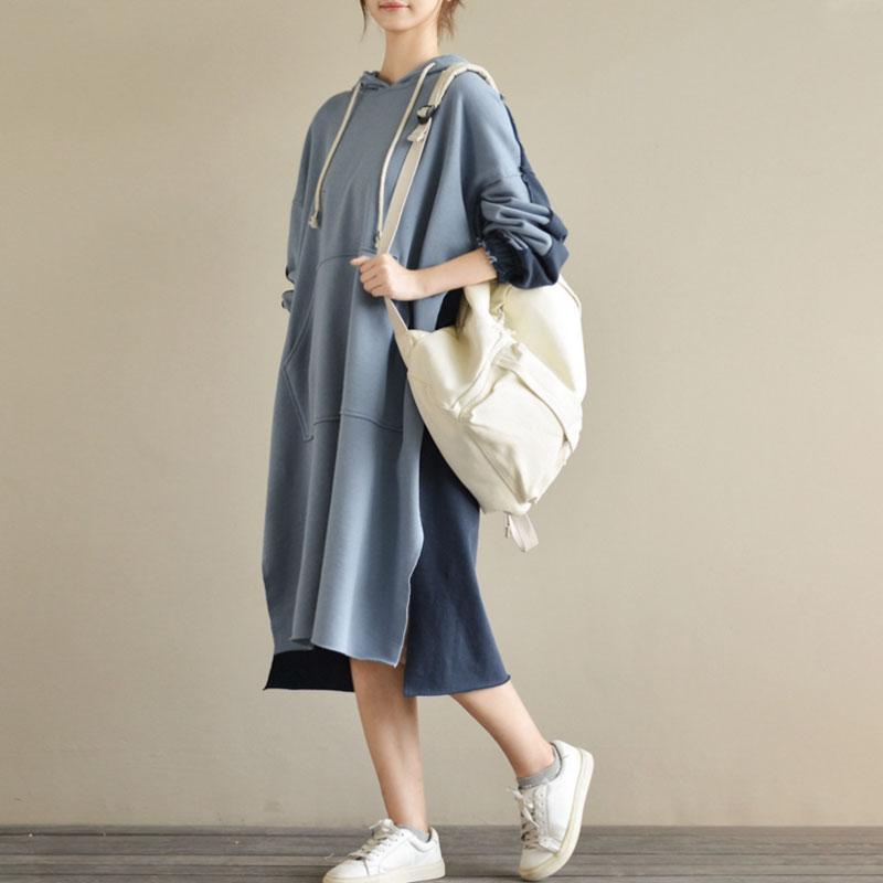 Loose Splicing Hoodies Women Long Sleeve Irregular Dress
