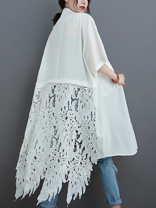 LOOSE SPLIT-JOINT HOLLOW SOLID LONG BLOUSE
