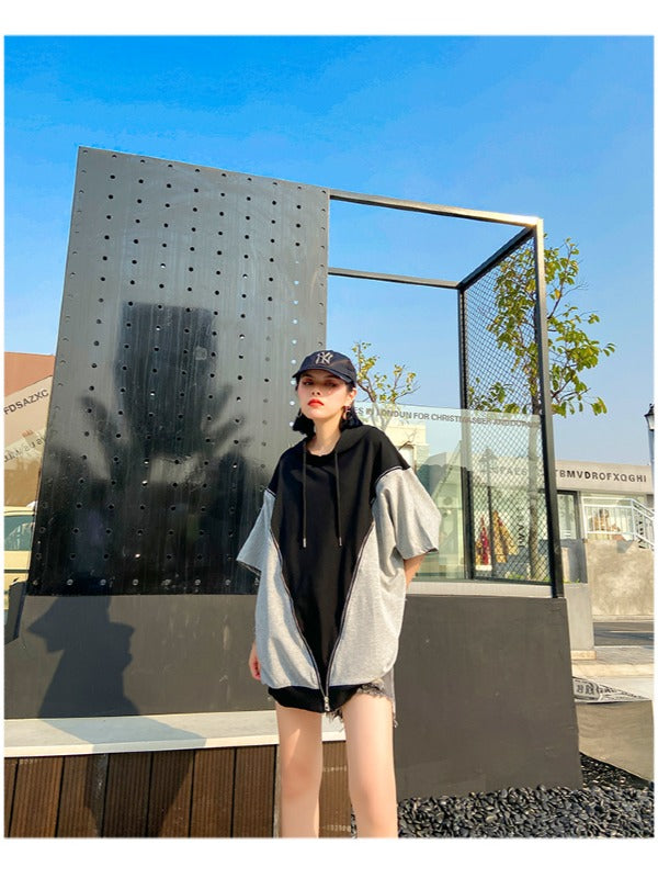 LOOSE SPLIT-JOINT HOODED COOL T-SHIRT