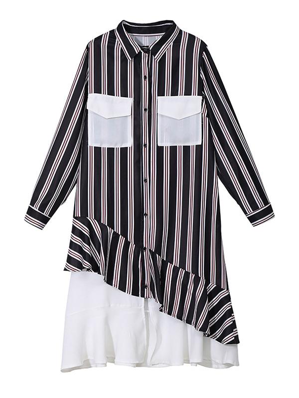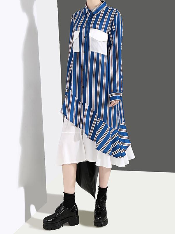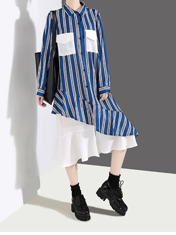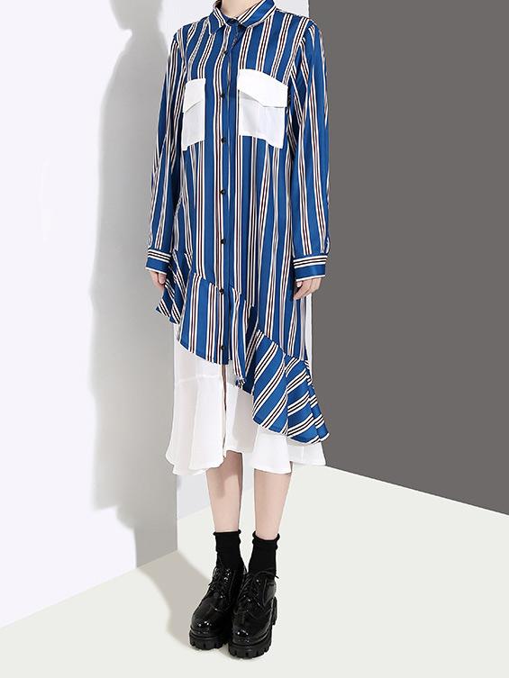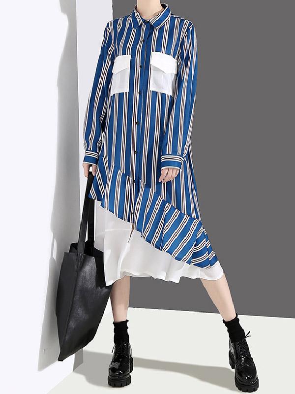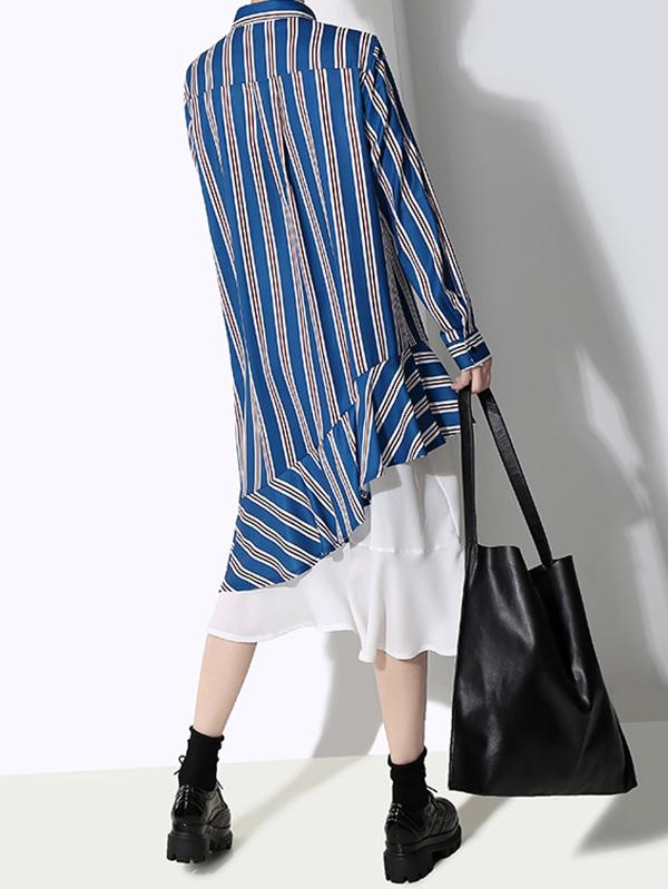 Loose Stripe Split-joint Long Dress
