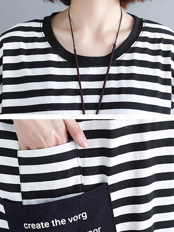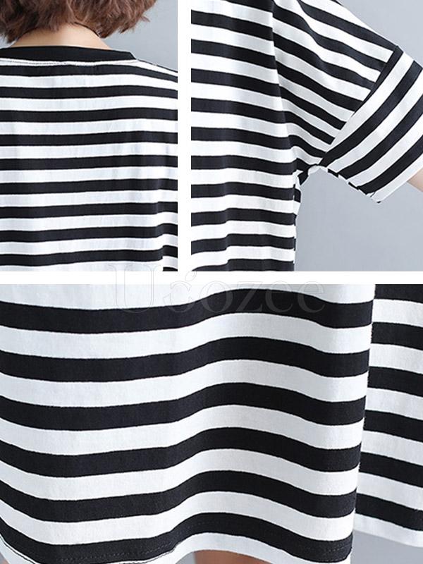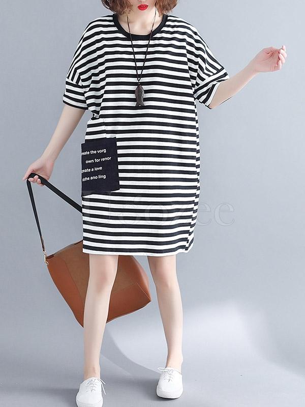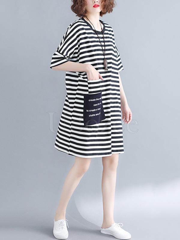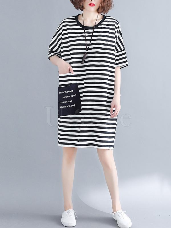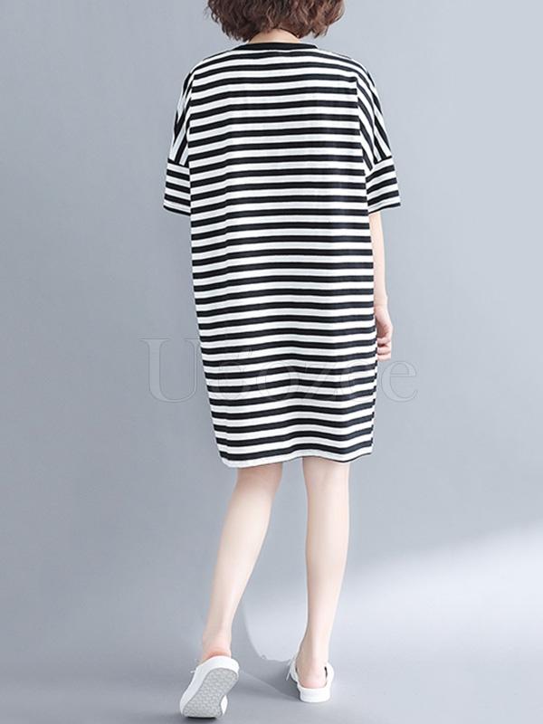Loose Striped Round-neck Shirt Dress