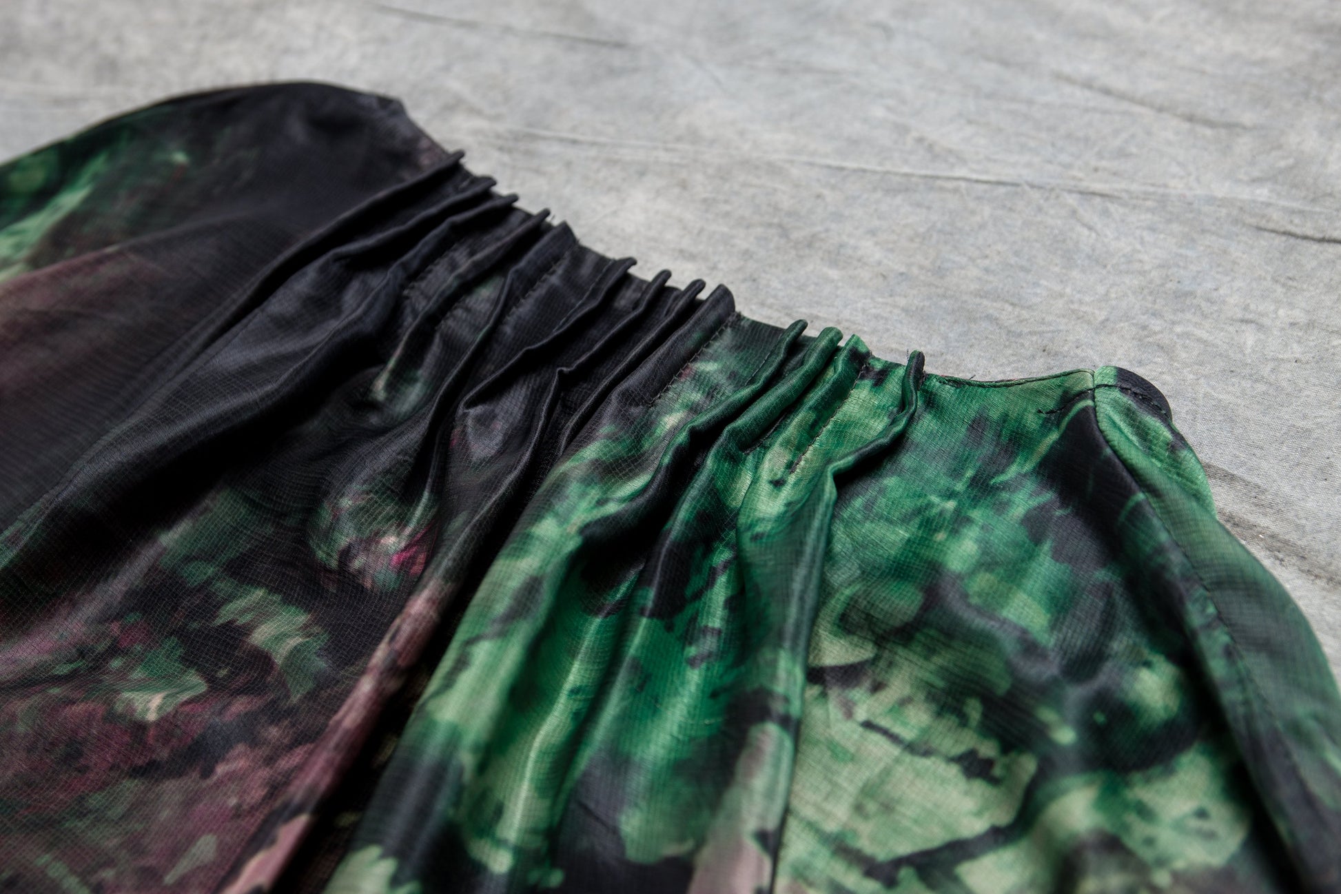 Clothing details: printed,irregular,side slit,pocket,pleated