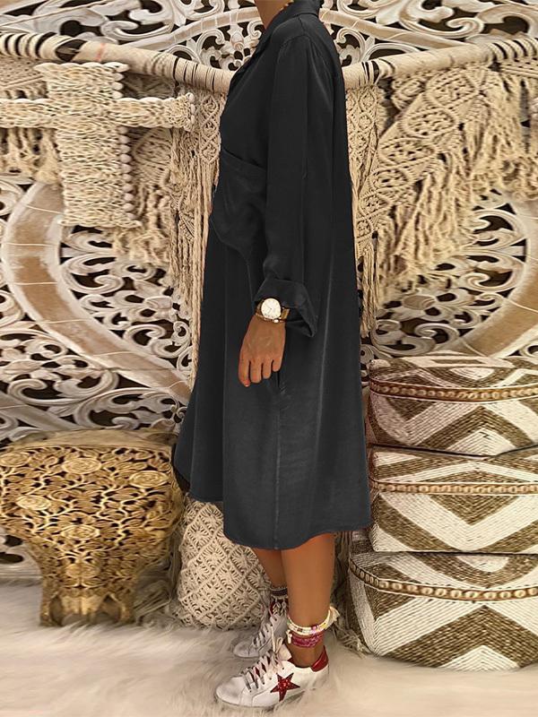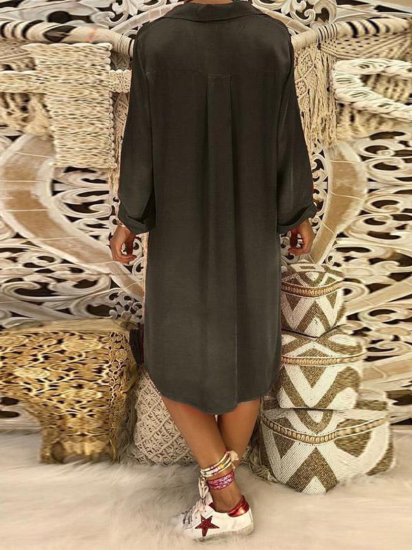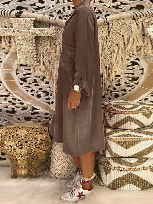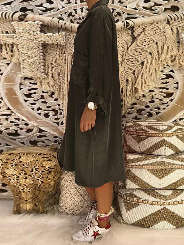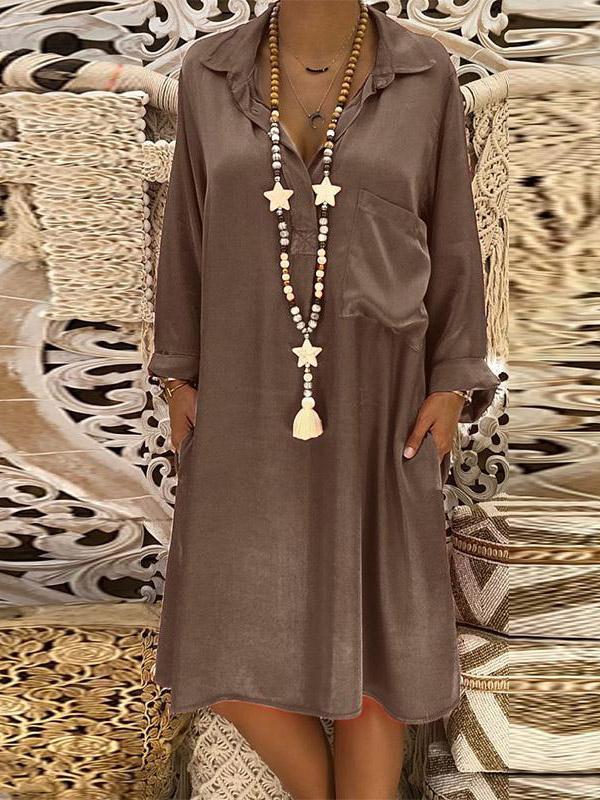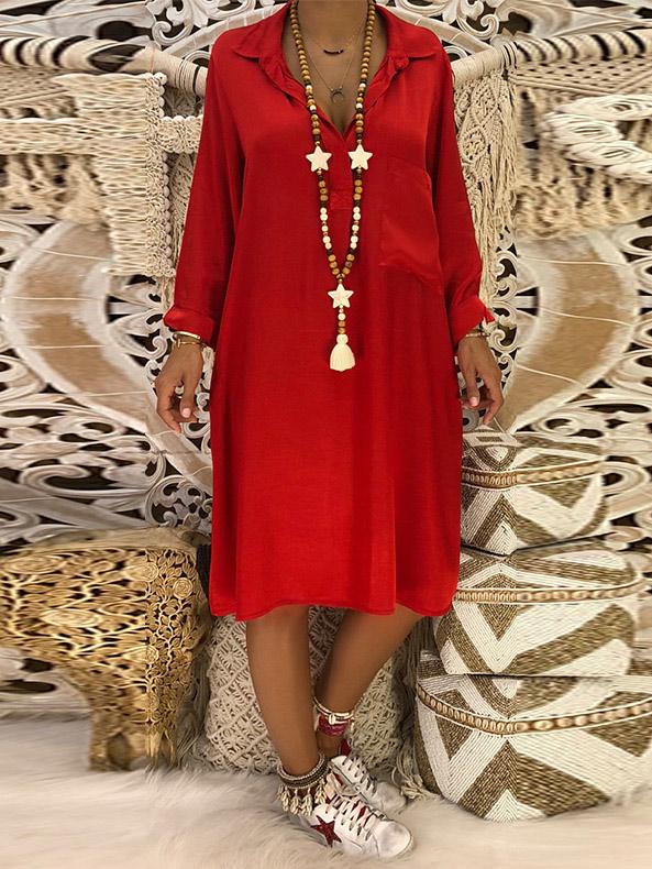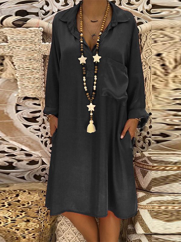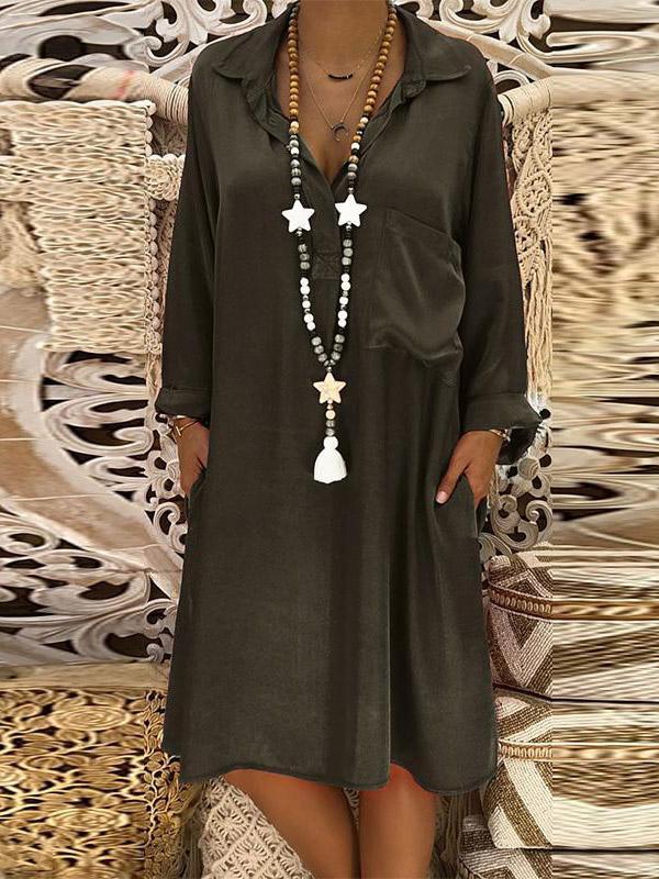 Loose V-neck Pocket Long Sleeves Midi Dress