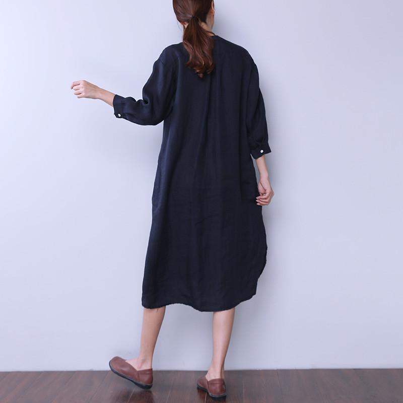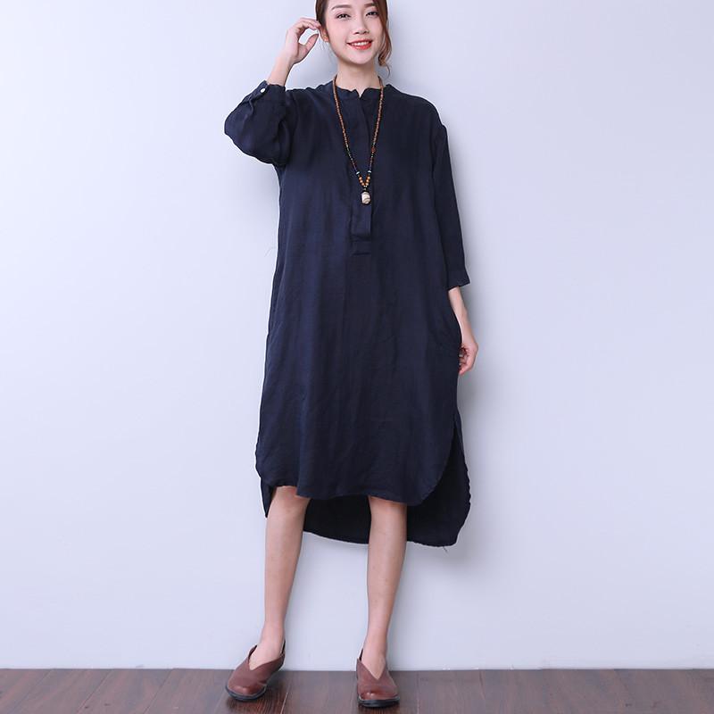 Loose Women Casual Cotton Irregular Navy Blue Dress