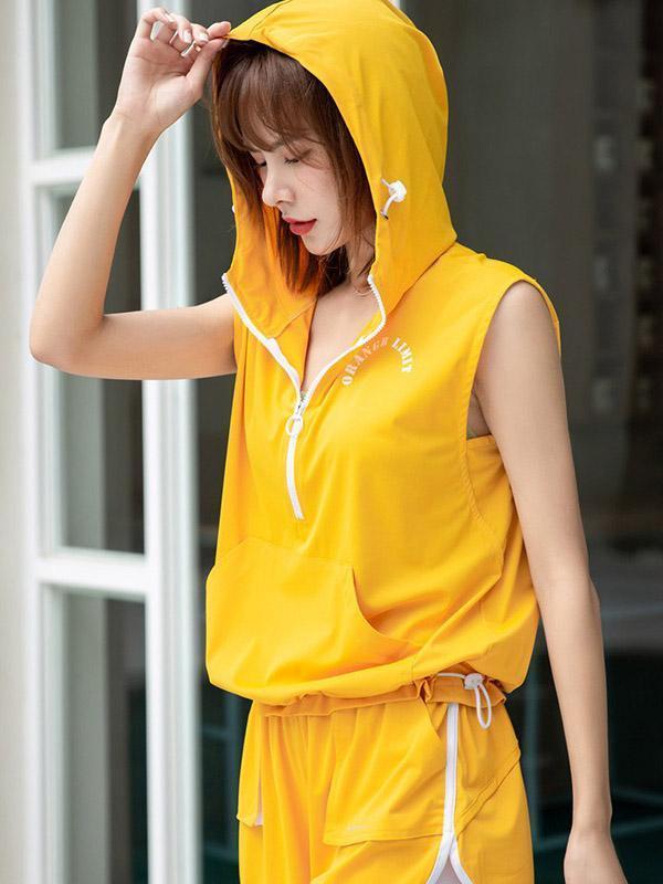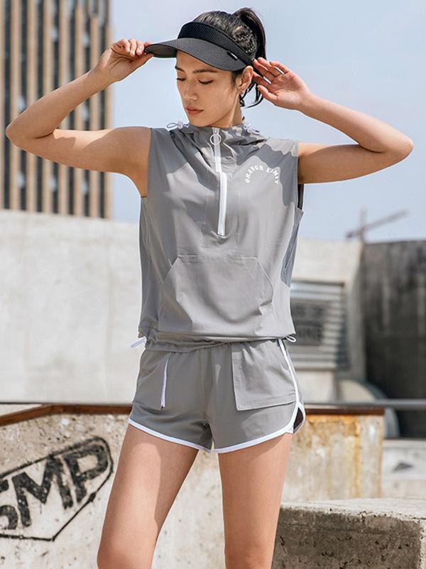 Loose Zipper Hooded Tanks&Shorts Sports Suits