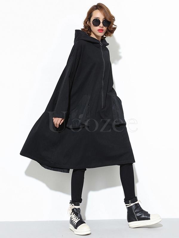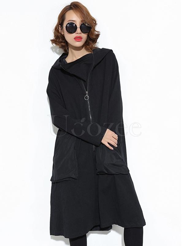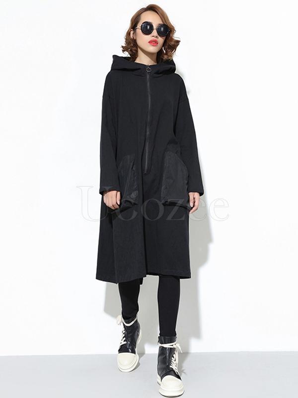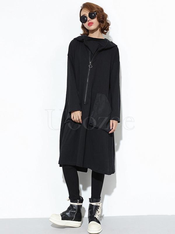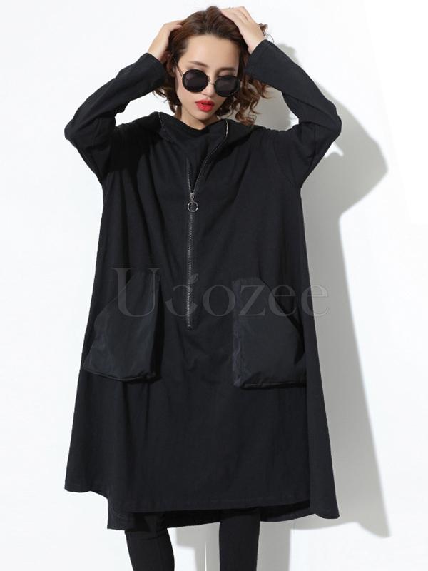 Loose Zipper Split-joint Hoodie Shirt Dress