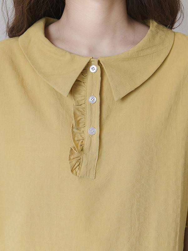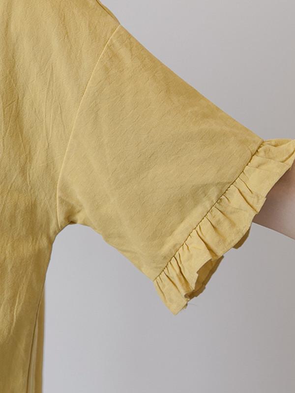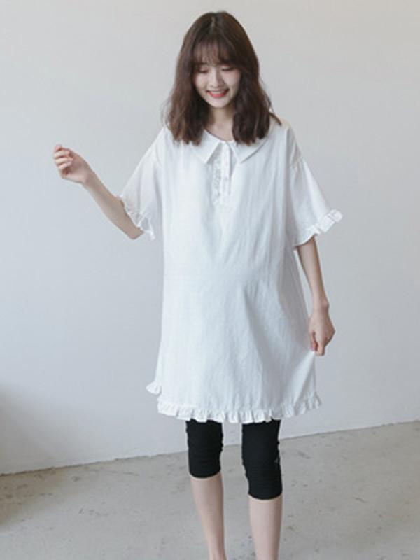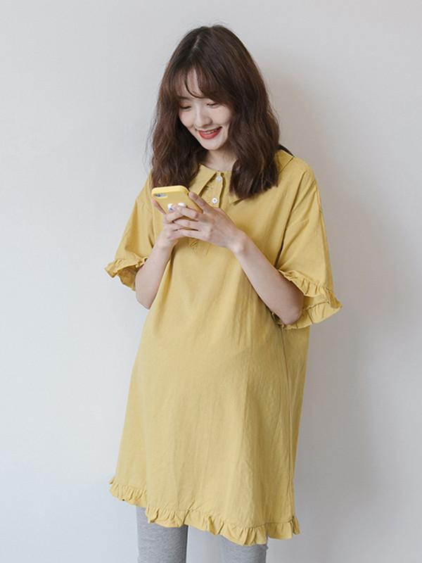 Maternity Solid Ruffled Short Sleeves Lapel Midi Dress