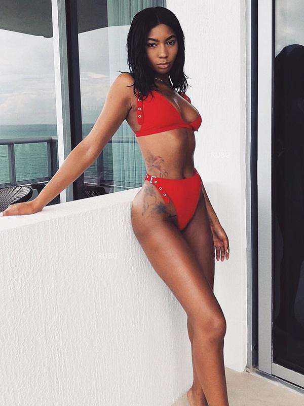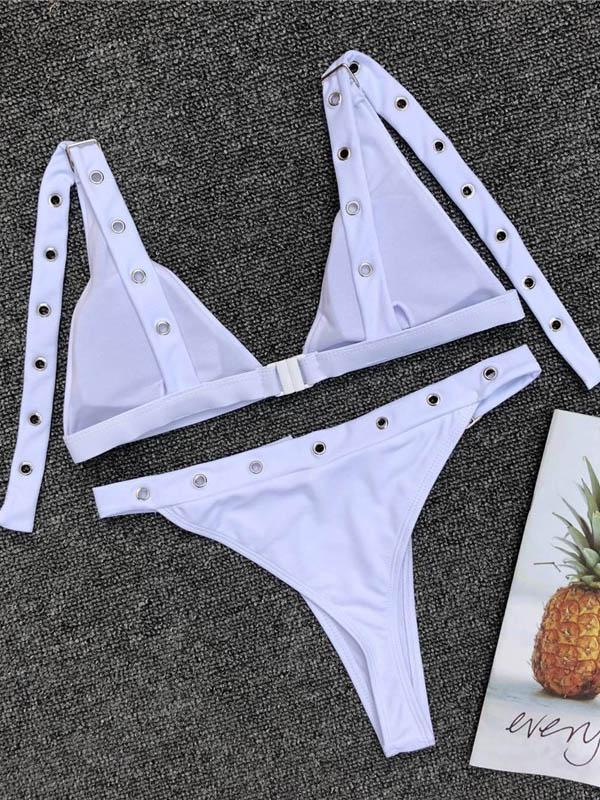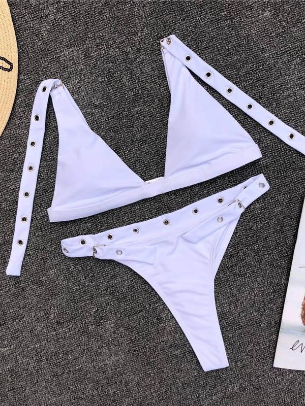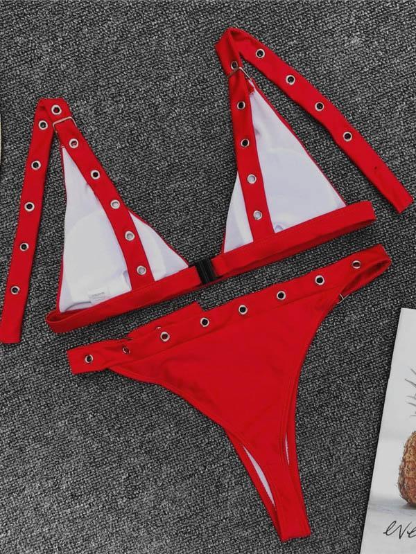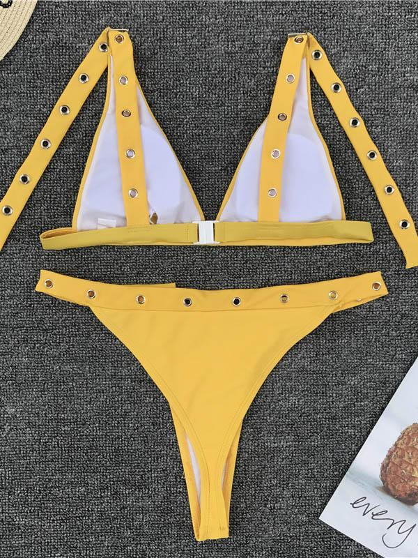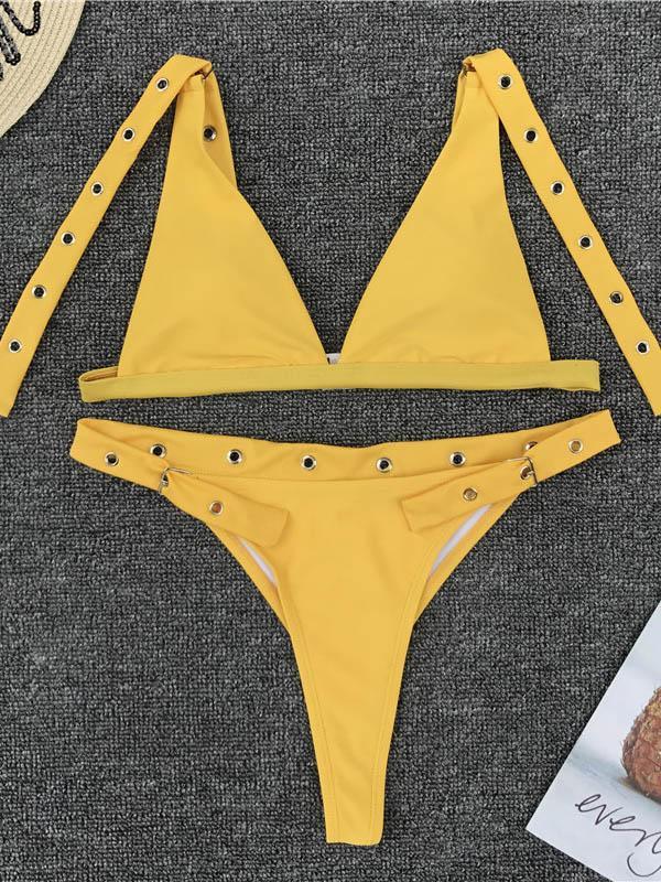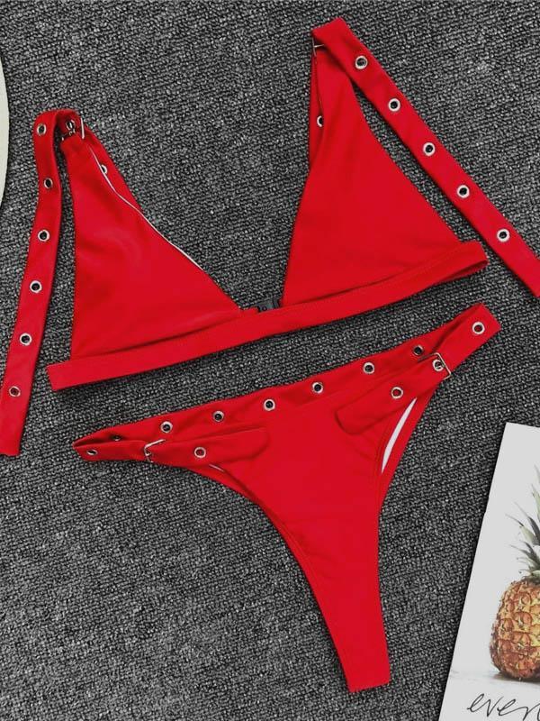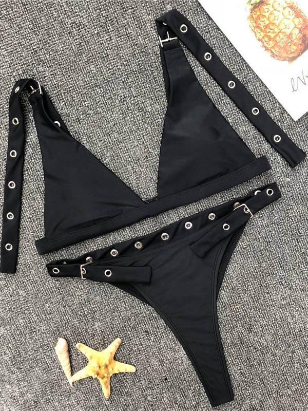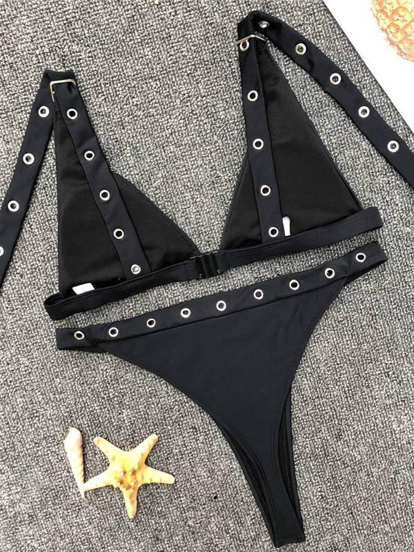 Metal-circle Adjustable Solid Bikinis Swimwear