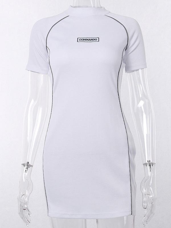 Mock Neck Letter Printed Mini Dress