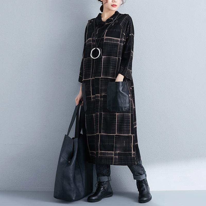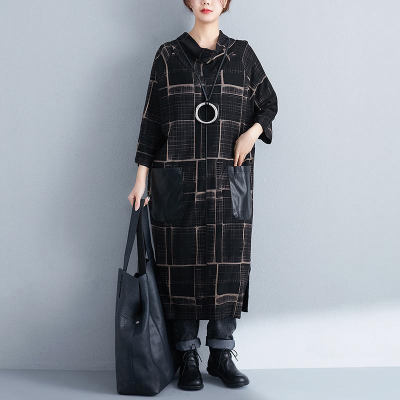 Mock Neck Three Quarter Sleeve Women Loose Dress
