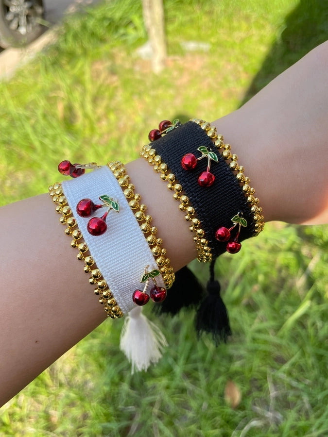 Modern Style Sweet Classic Style Cherry 18K Gold Plated Alloy Polyester Copper Woven Chain String Bracelets