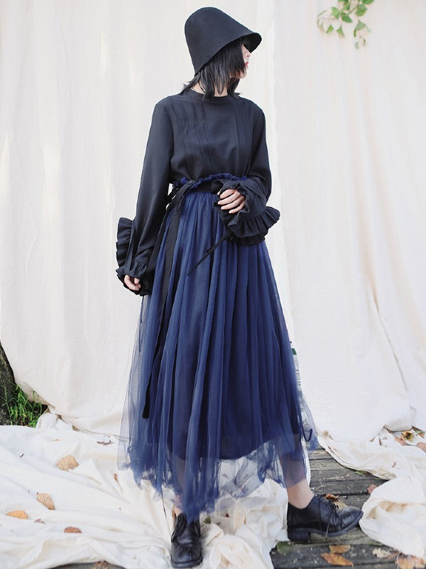 MULTICOLORED DOUBLE-LAYER A-LINE EMPIRE MESH SKIRT