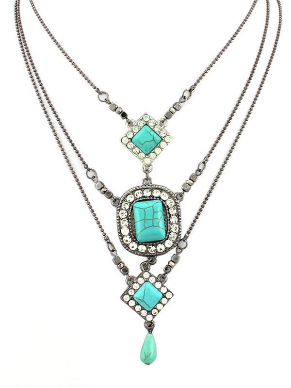 Multilayer Square Pattern Turquoise Necklaces Accessories