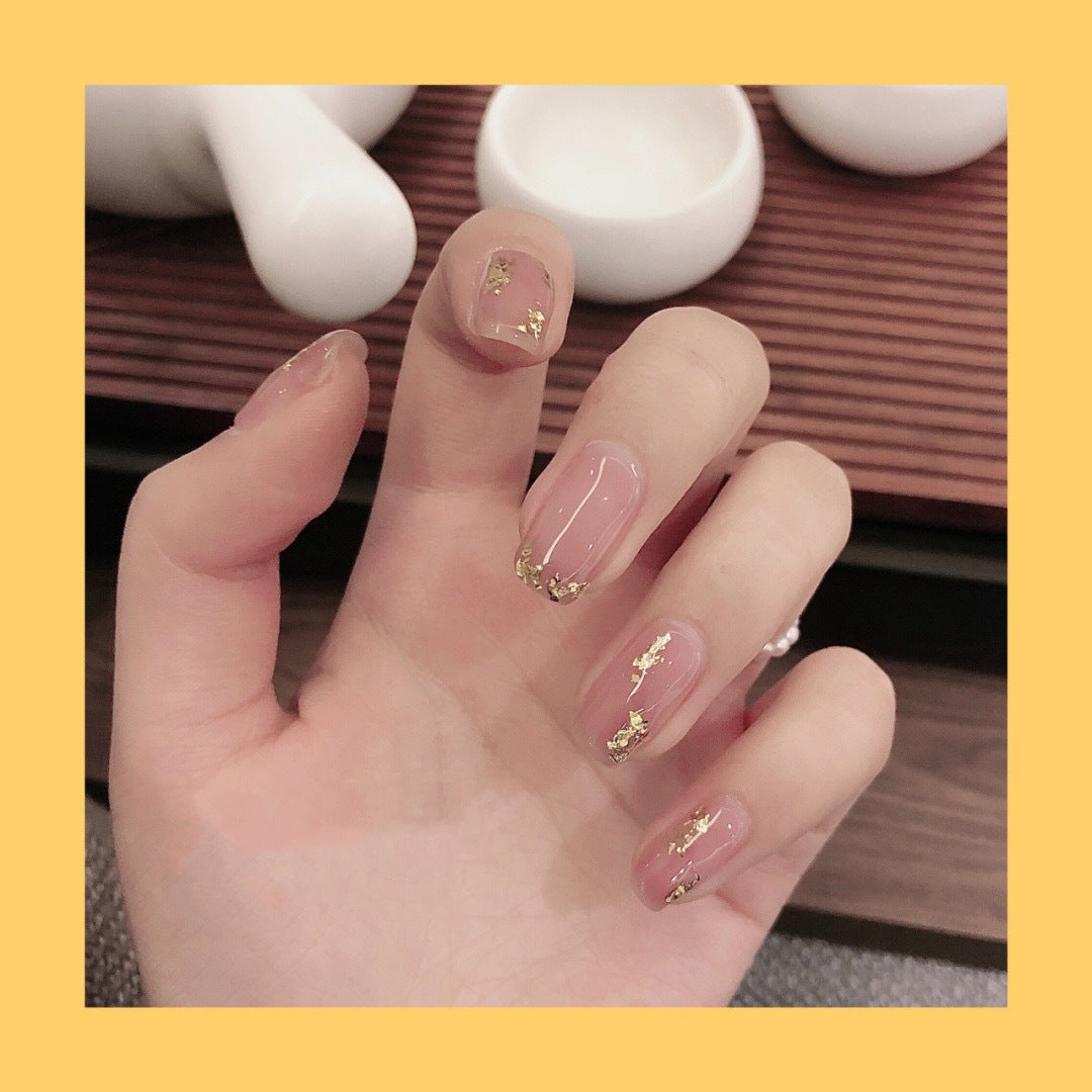 Naked color transparent gentle gold foil PRESS ON NAILS