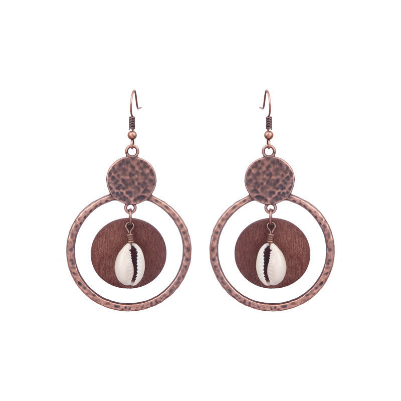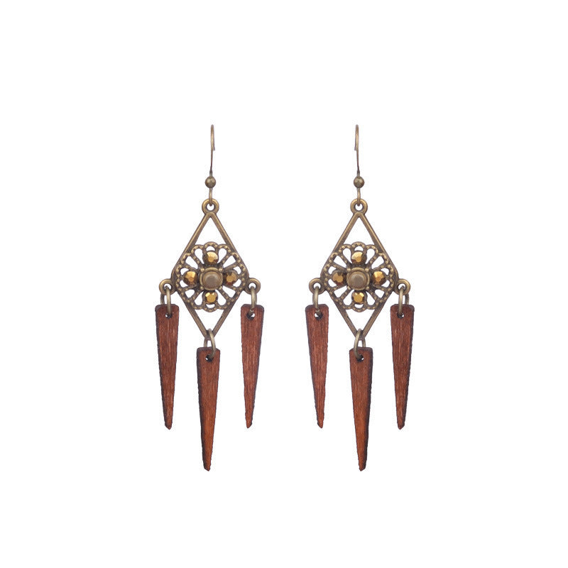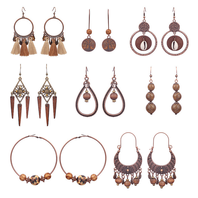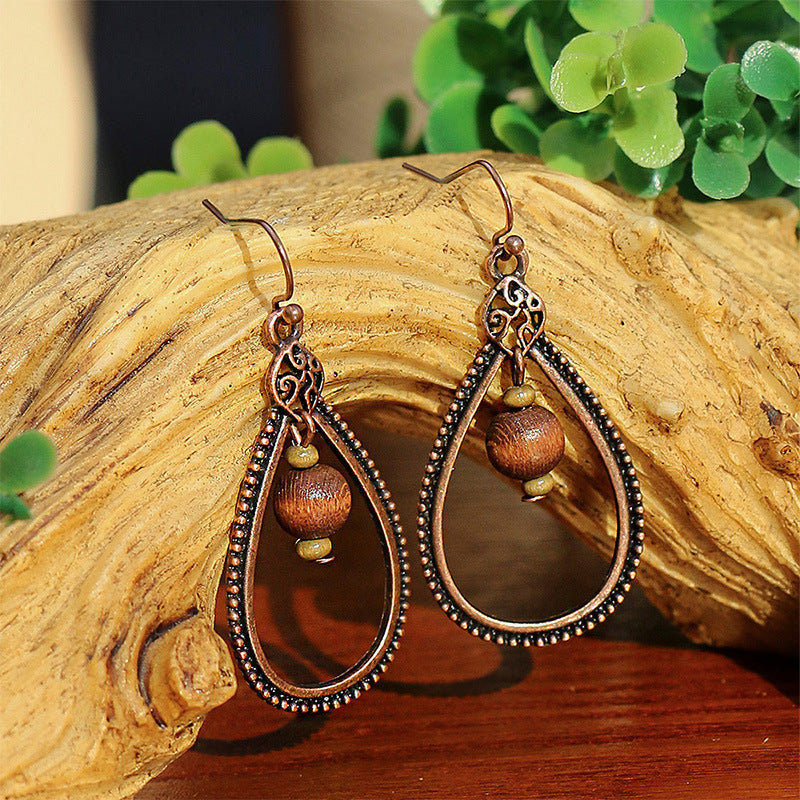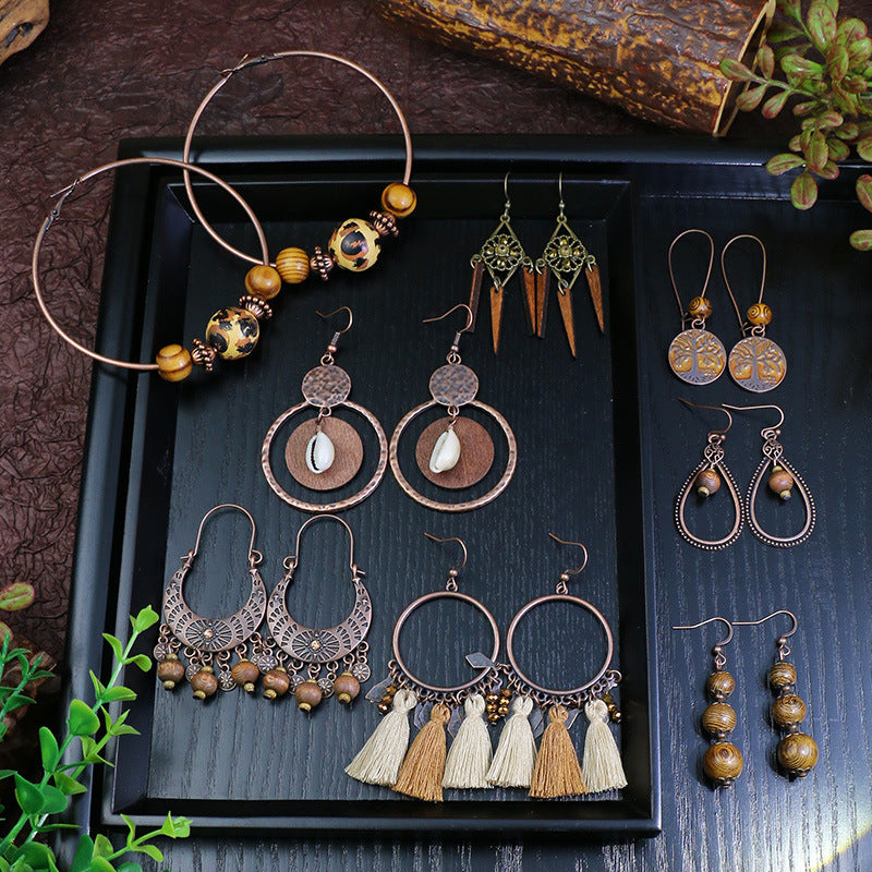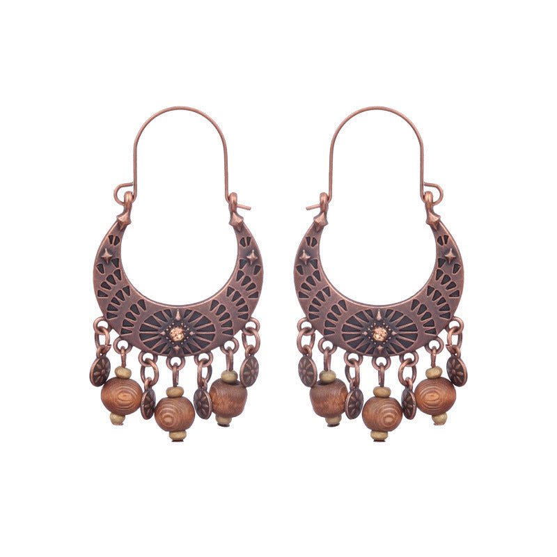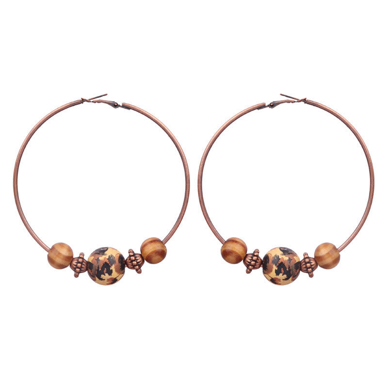 National Geometric Round Wooden Bead Earrings
