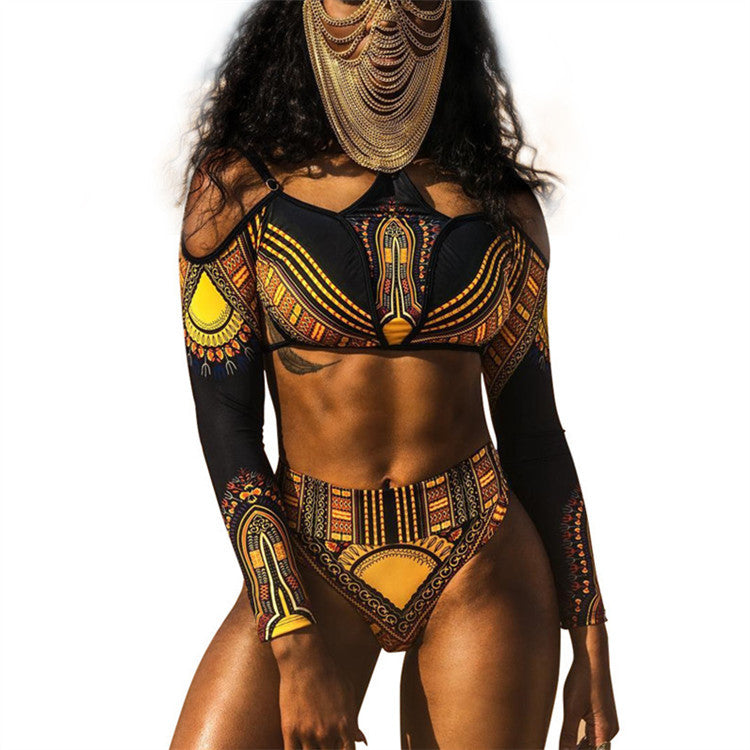 National long-sleeve print high-waisted BIKINI SWIMSUIT