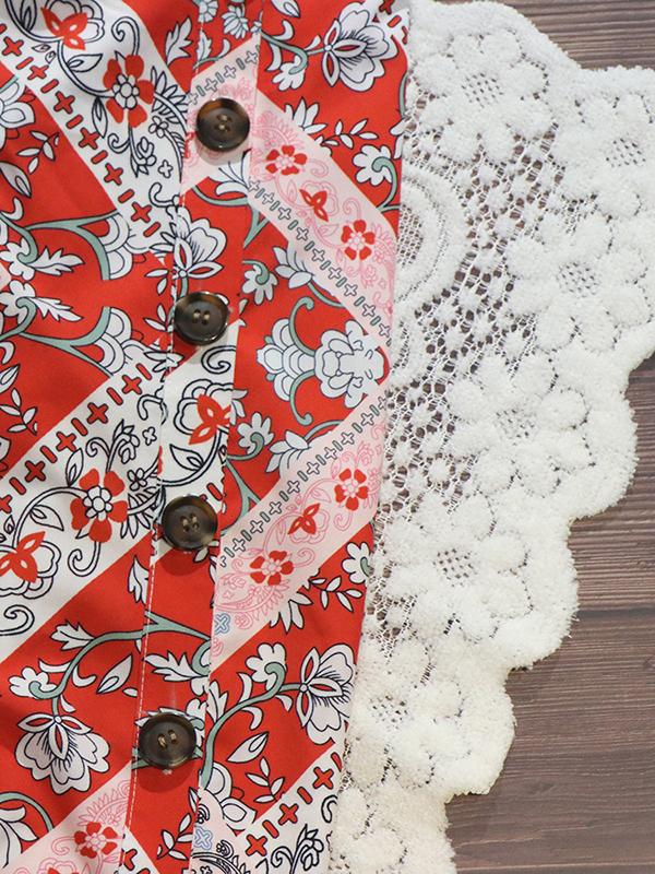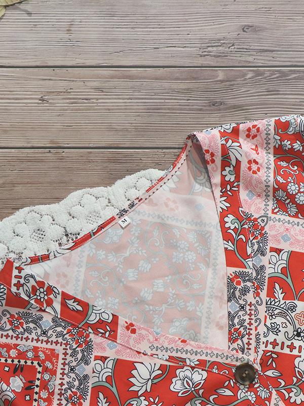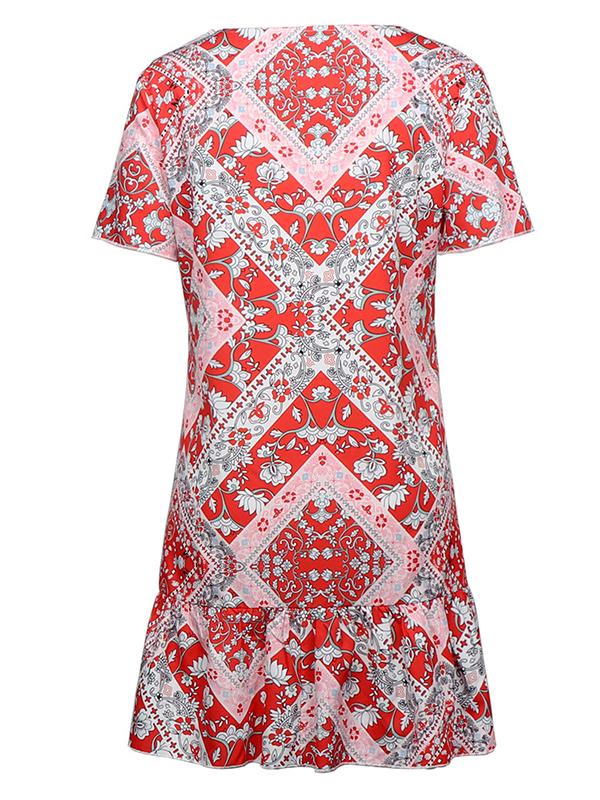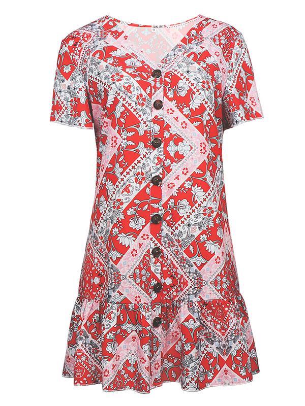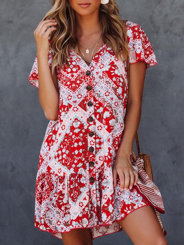 National printed Ruffled V-neck Mini Dresses
