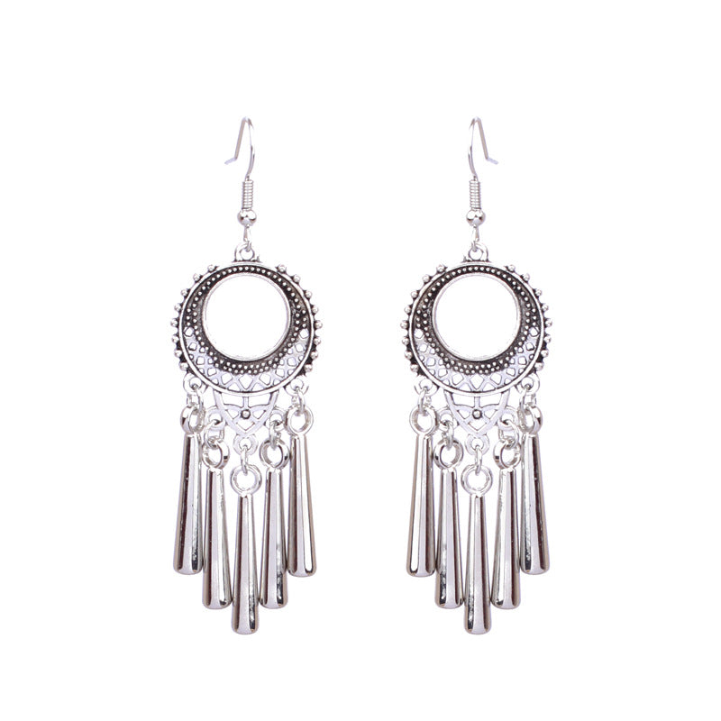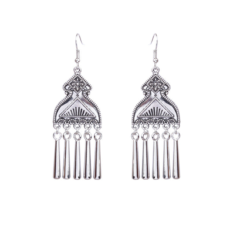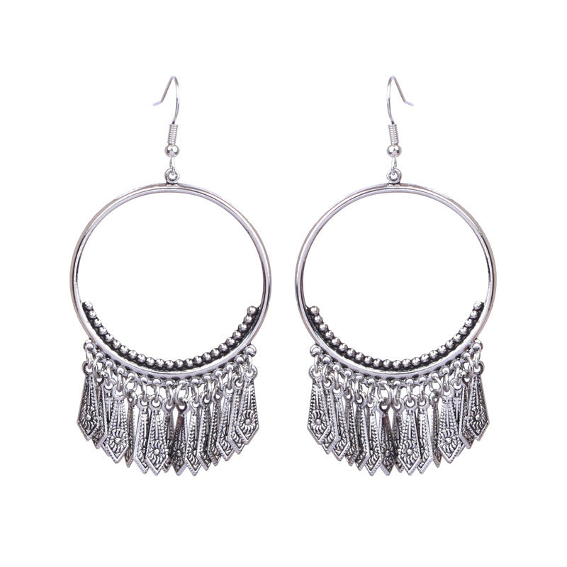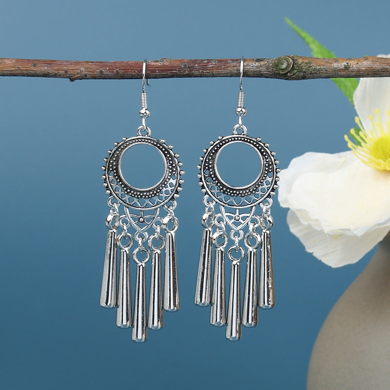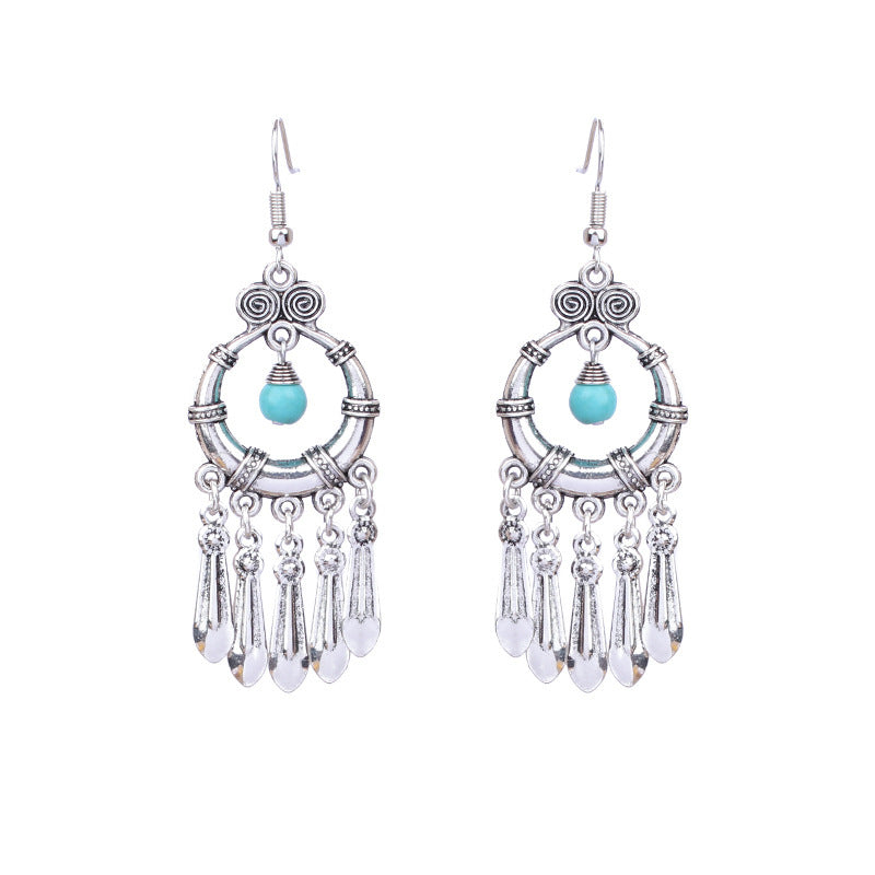 National retro silver Bohemian turquoise tassel earrings