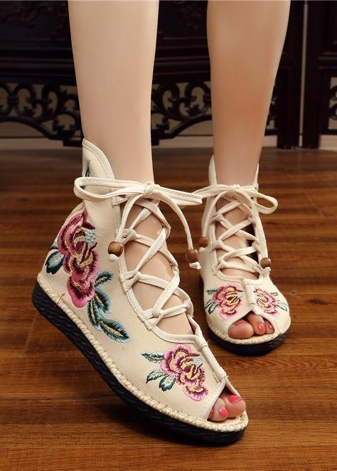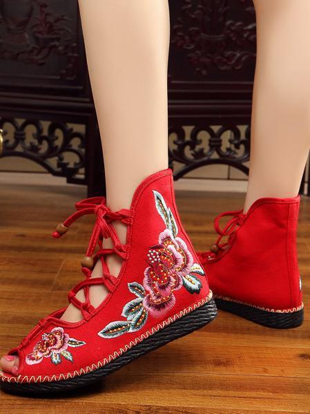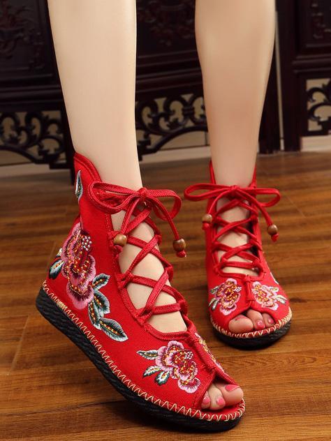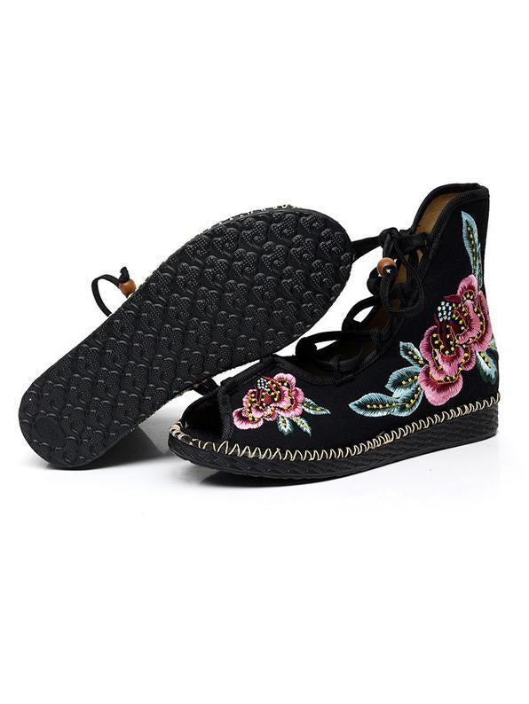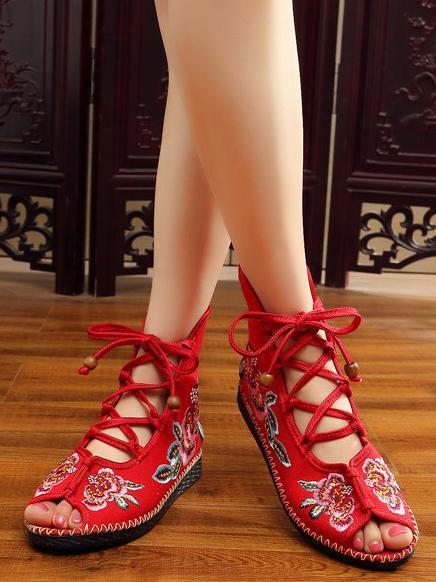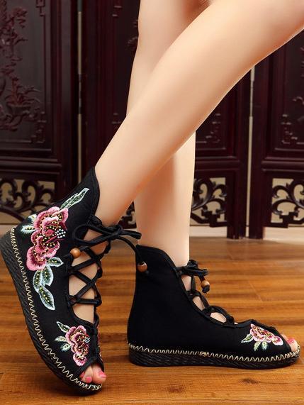 National Style Embroidered Lace-up Shoes