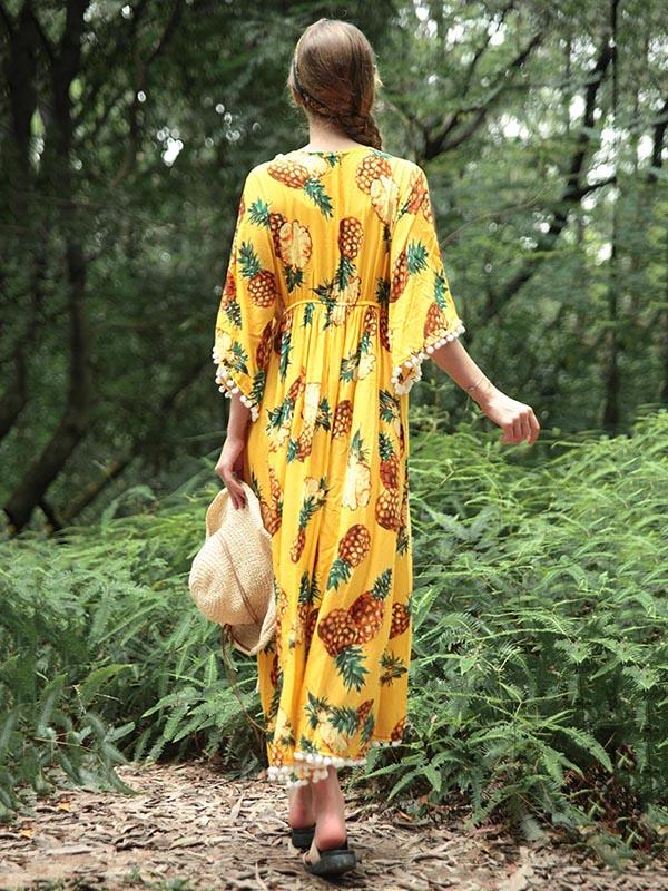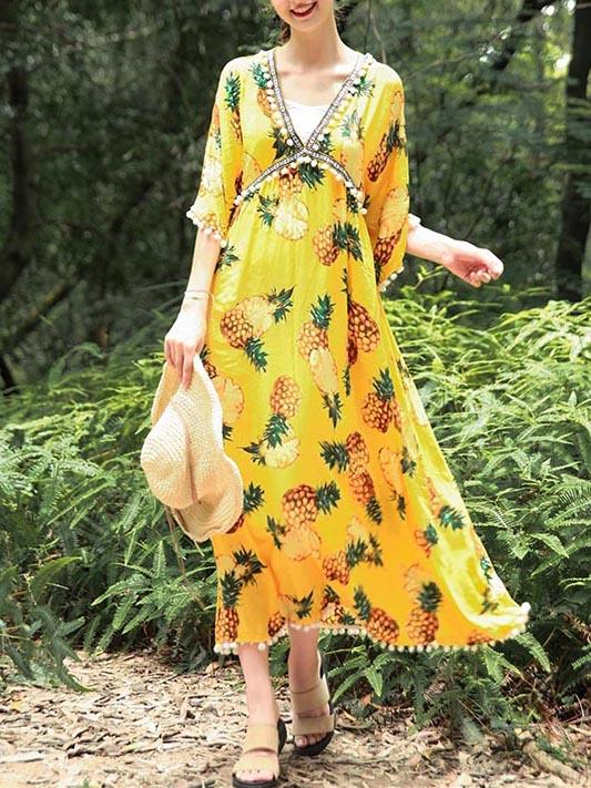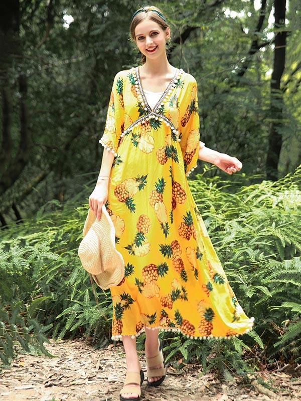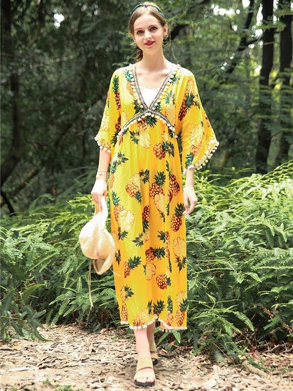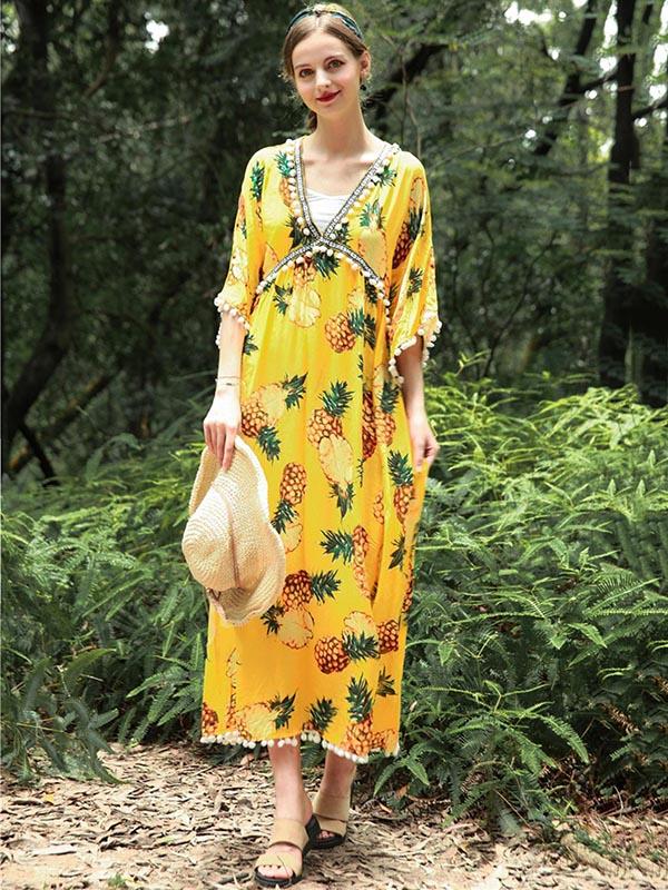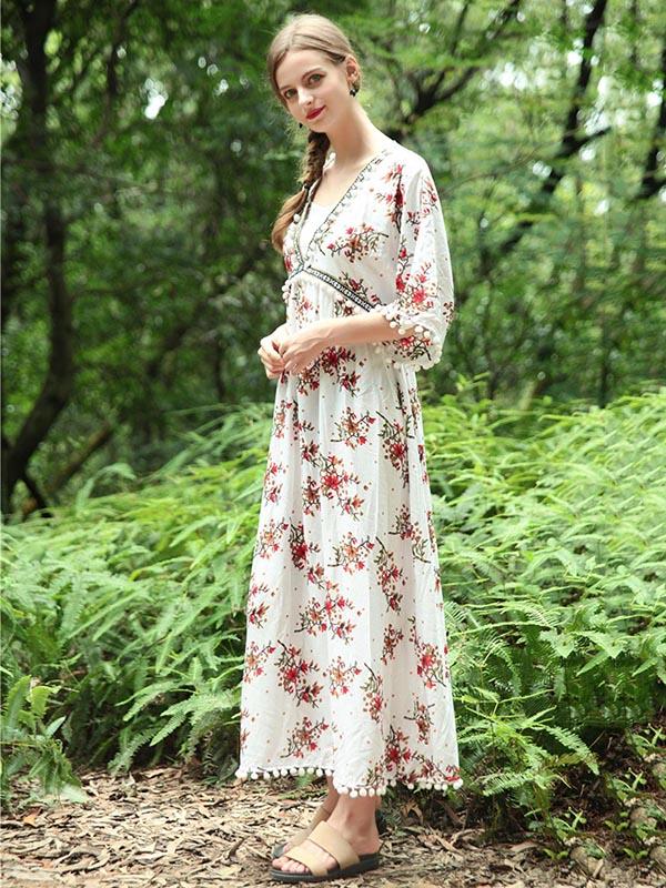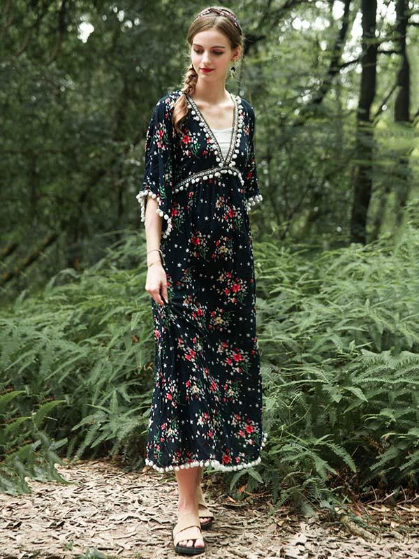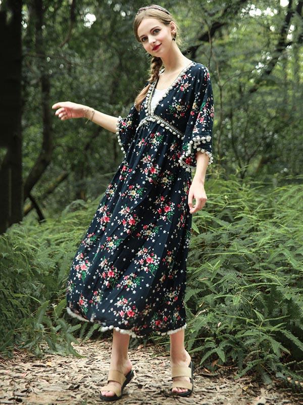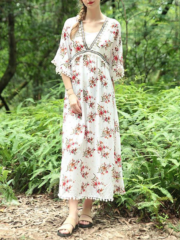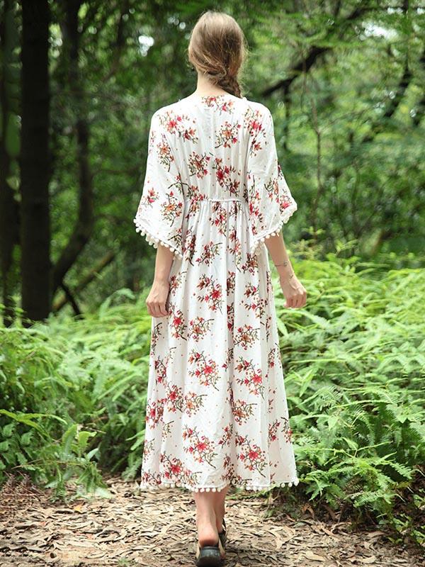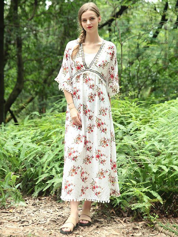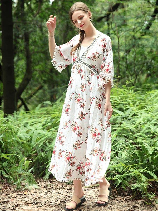 National V-Neck Loose Flared Sleeves Bohemia Dresses