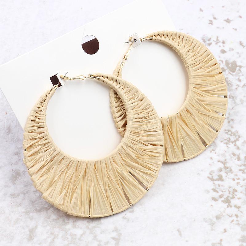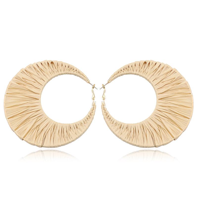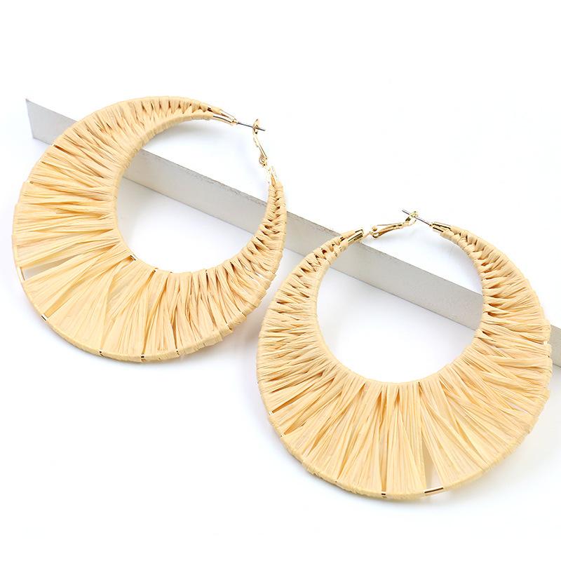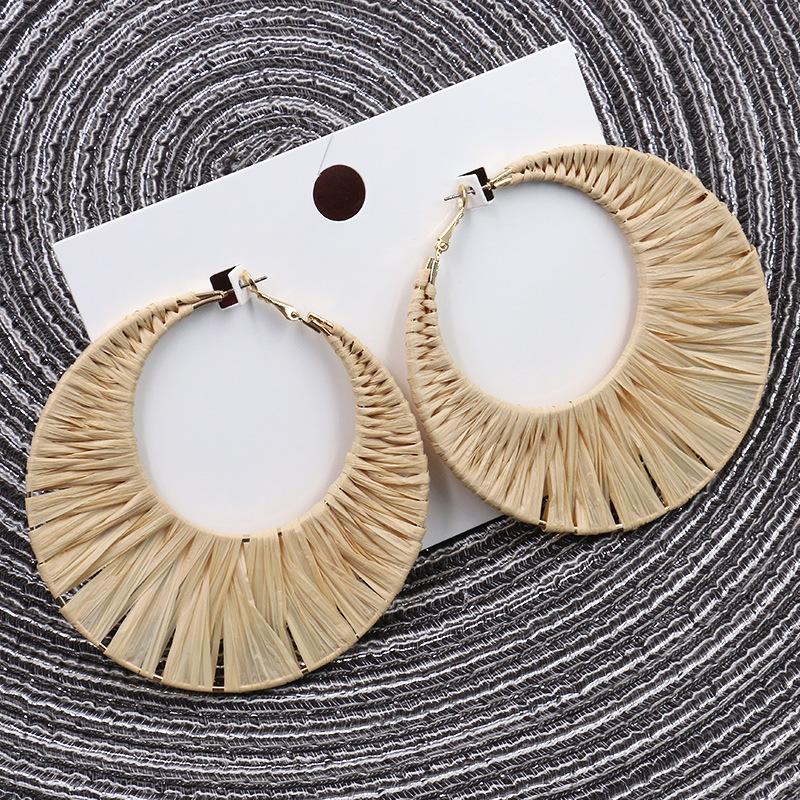 New Lafite Grass Bohemian Exaggerated Creative Woven Round Earrings Wholesale