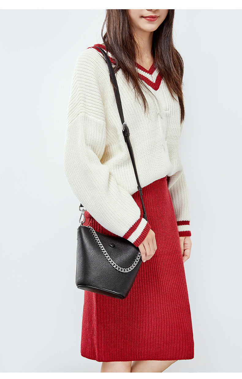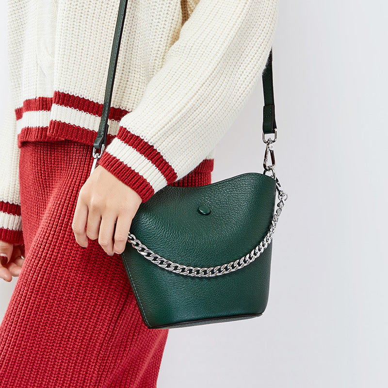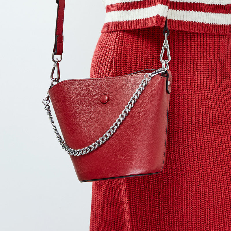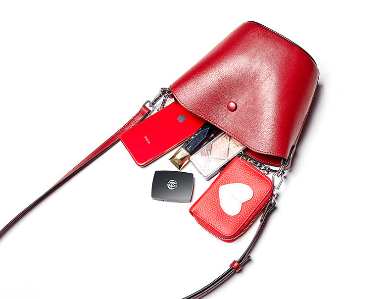 Cowhide Mini mother and son bag Single Shoulder Messenger Handbag Bucket Bag