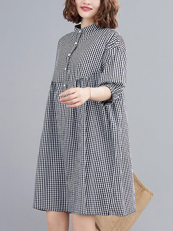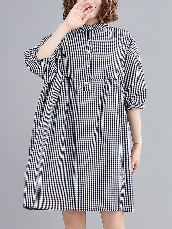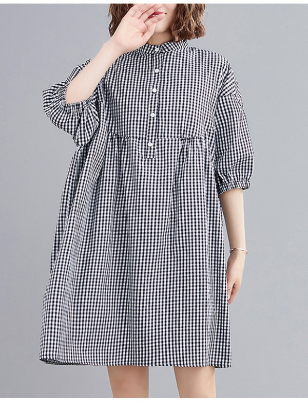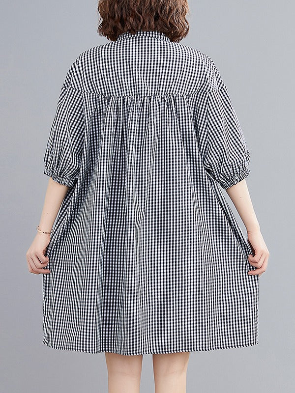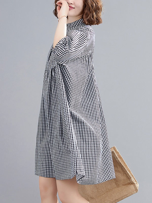 NEW LOOSE PLAID PUFF SLEEVE SHIRT DRESS