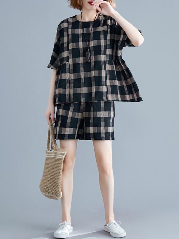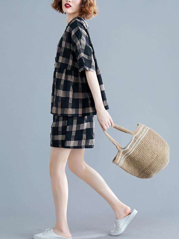 New Plaid T-Shirt + Loose Oversize Short Pants