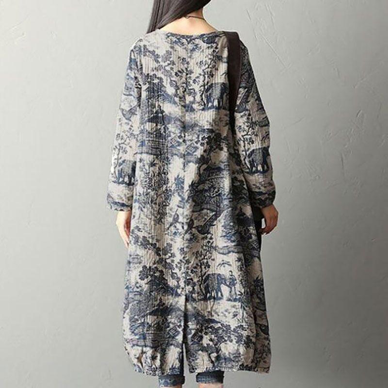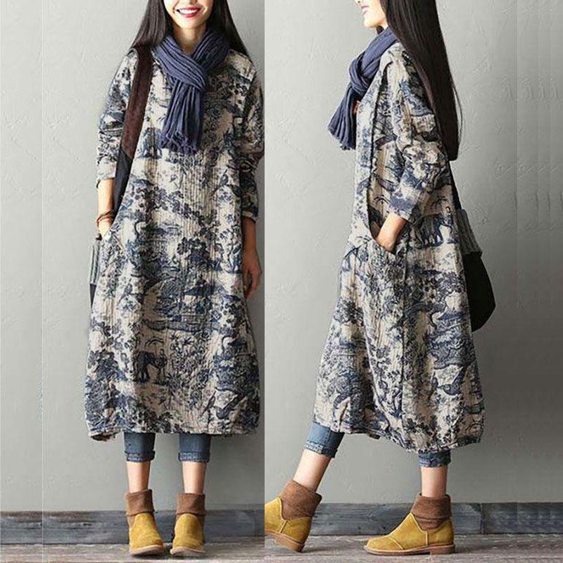 Printing cotton robe, this dress is made of soft cotton material, unique print design, long sleeve.