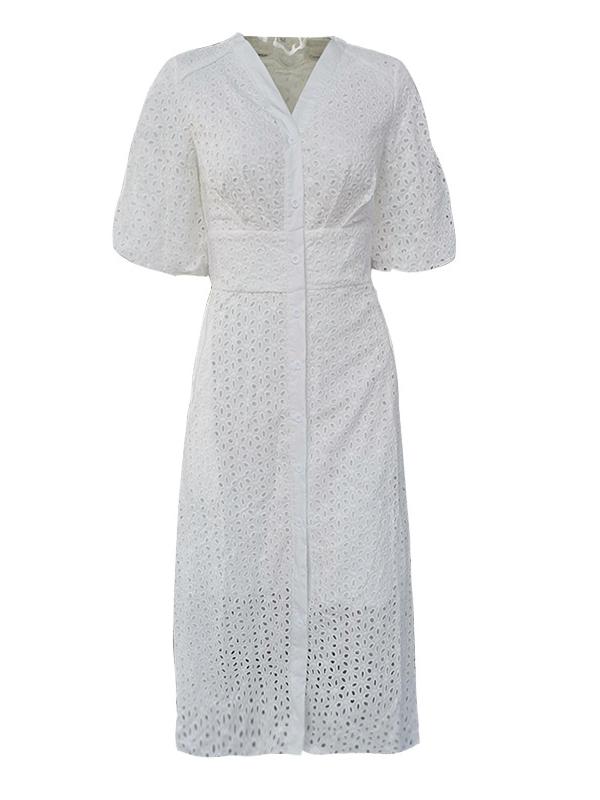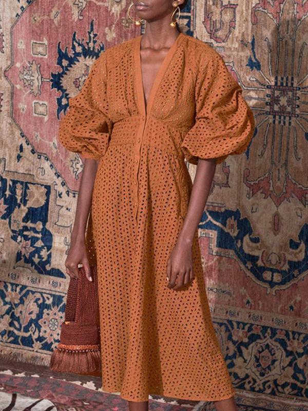 New Puff Sleeve High Waist Midi Dress