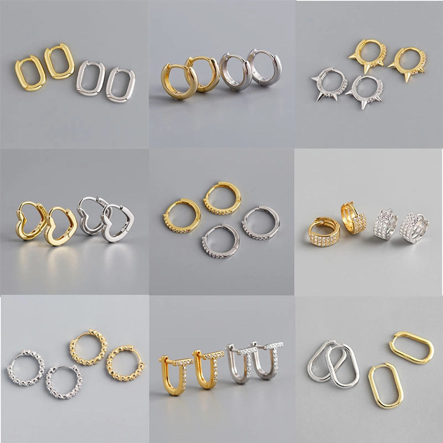 New s925 sterling silver earrings women's Korean-style diamond-embedded gold-plated internet celebrity earrings simple ear buckle live broadcast