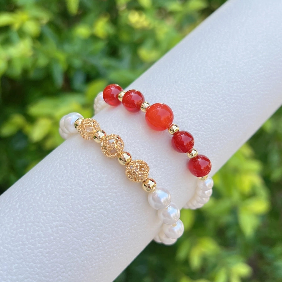 Nordic Style Round Zircon Imitation Pearl opal Copper Beaded Bracelets