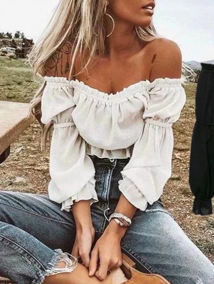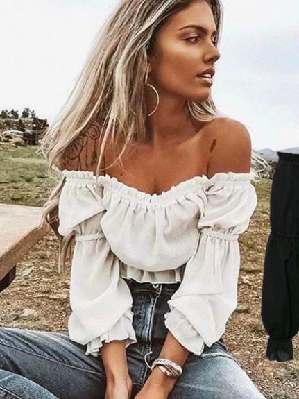 Off Shoulder Falbala Solid Fresh Shirt Top
