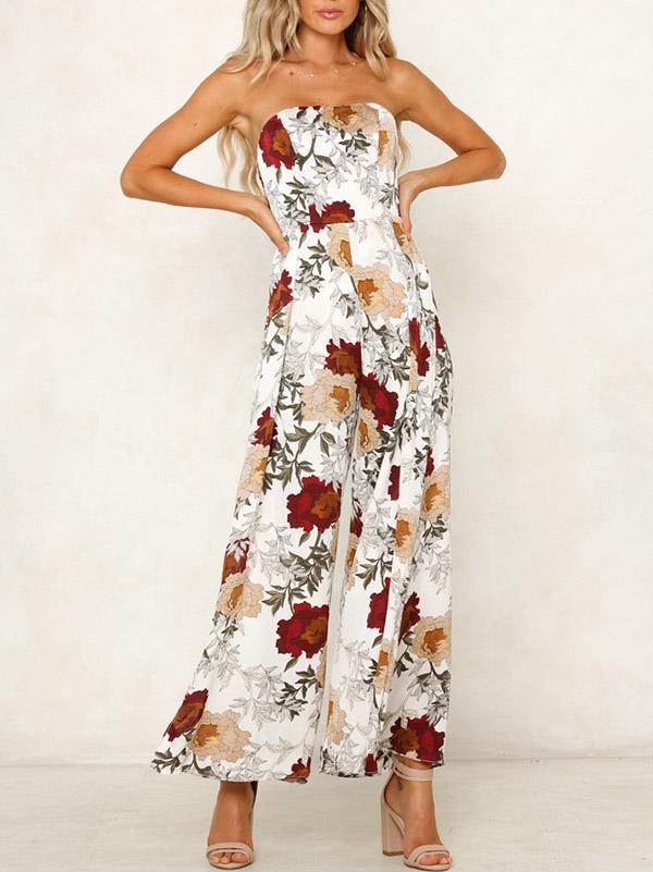 Off Shoulder Floral Printed Bohemia Jumpsuits