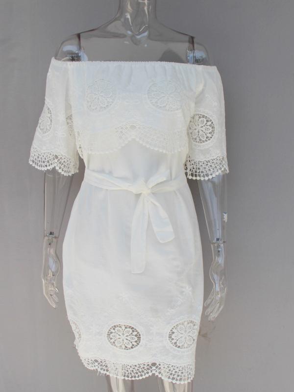 Off-shoulder Sexy Hollow Lace Mini Dress